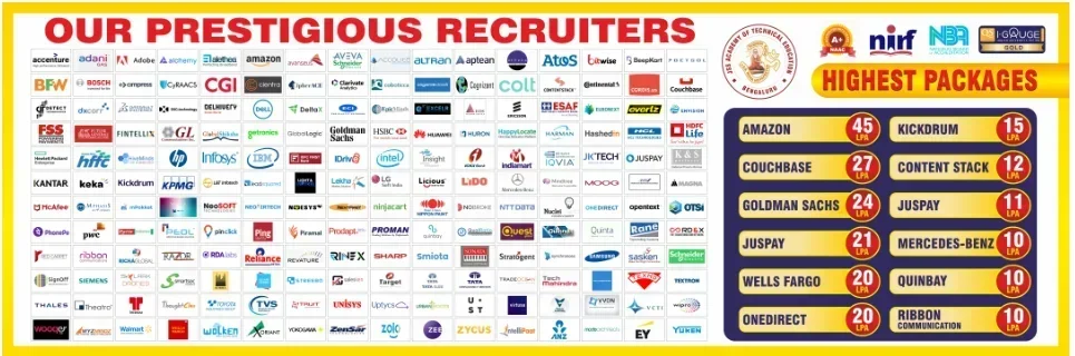 The recruiting partners of JSSATE Bangalore include various companies like Amazon, Wipro, TCS and many others.