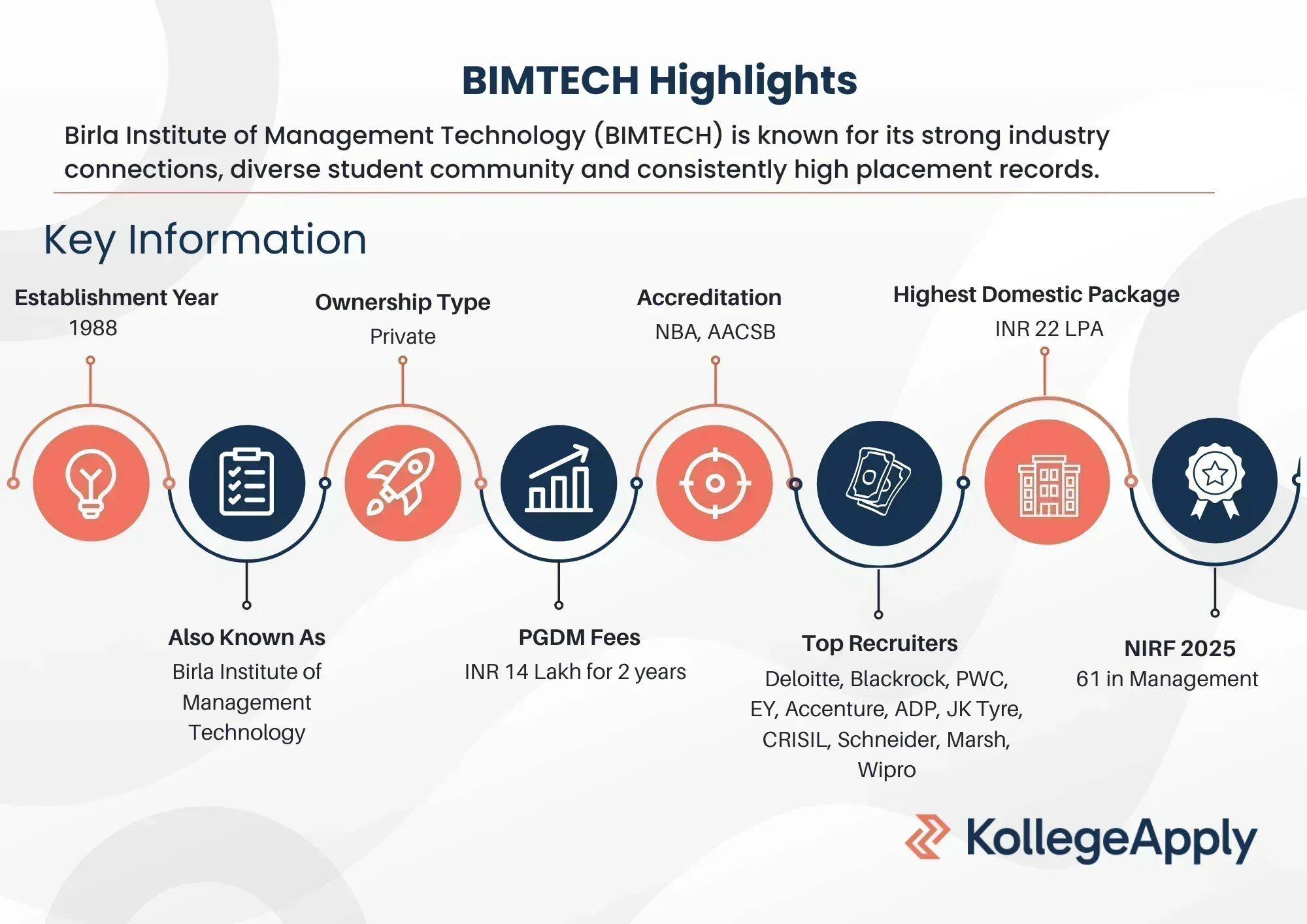 Top BIMTECH recruiters include Deloitte, EY, PWC, Accenture, Blackrock, Wipro, Marsh, Nestle, UNIQLO and Capgemini.