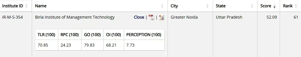 BIMTECH is ranked 61st in the Management category in the NIRF Ranking 2025.