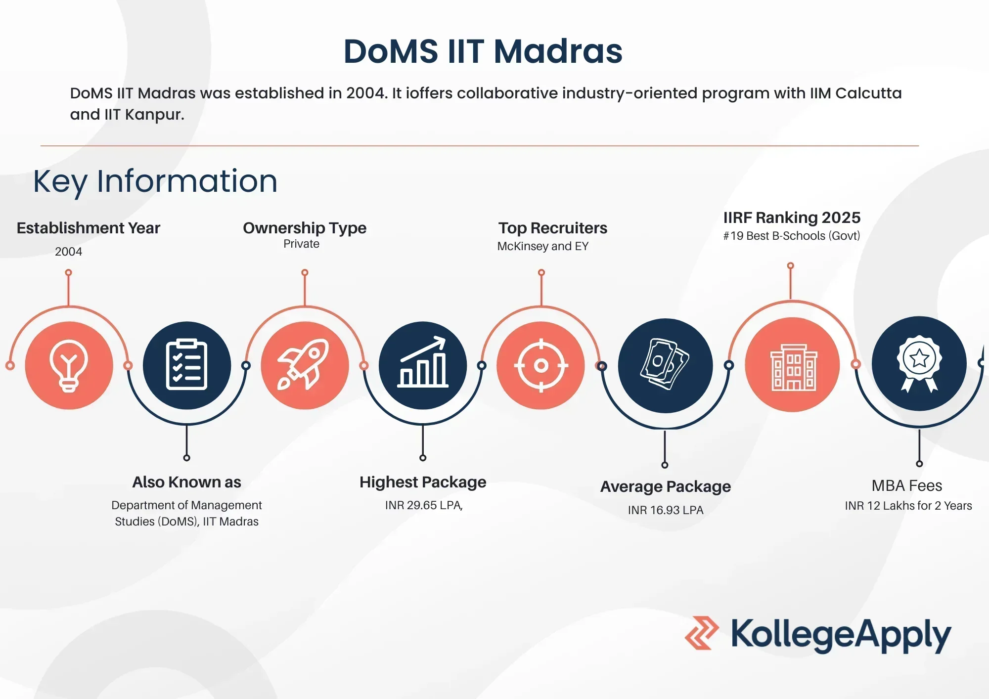 Admissions are based on academic merit and entrance exams, such as CAT, followed by a writing ability test (WAT) and a personal interview (PI). During the 2024 placements, the highest package offered was INR 29.65 LPA, while the average package stood at INR 16.93 LPA. Some of the top recruiters at DoMS IIT Madras include Accenture, Deloitte, Amazon, McKinsey and EY.