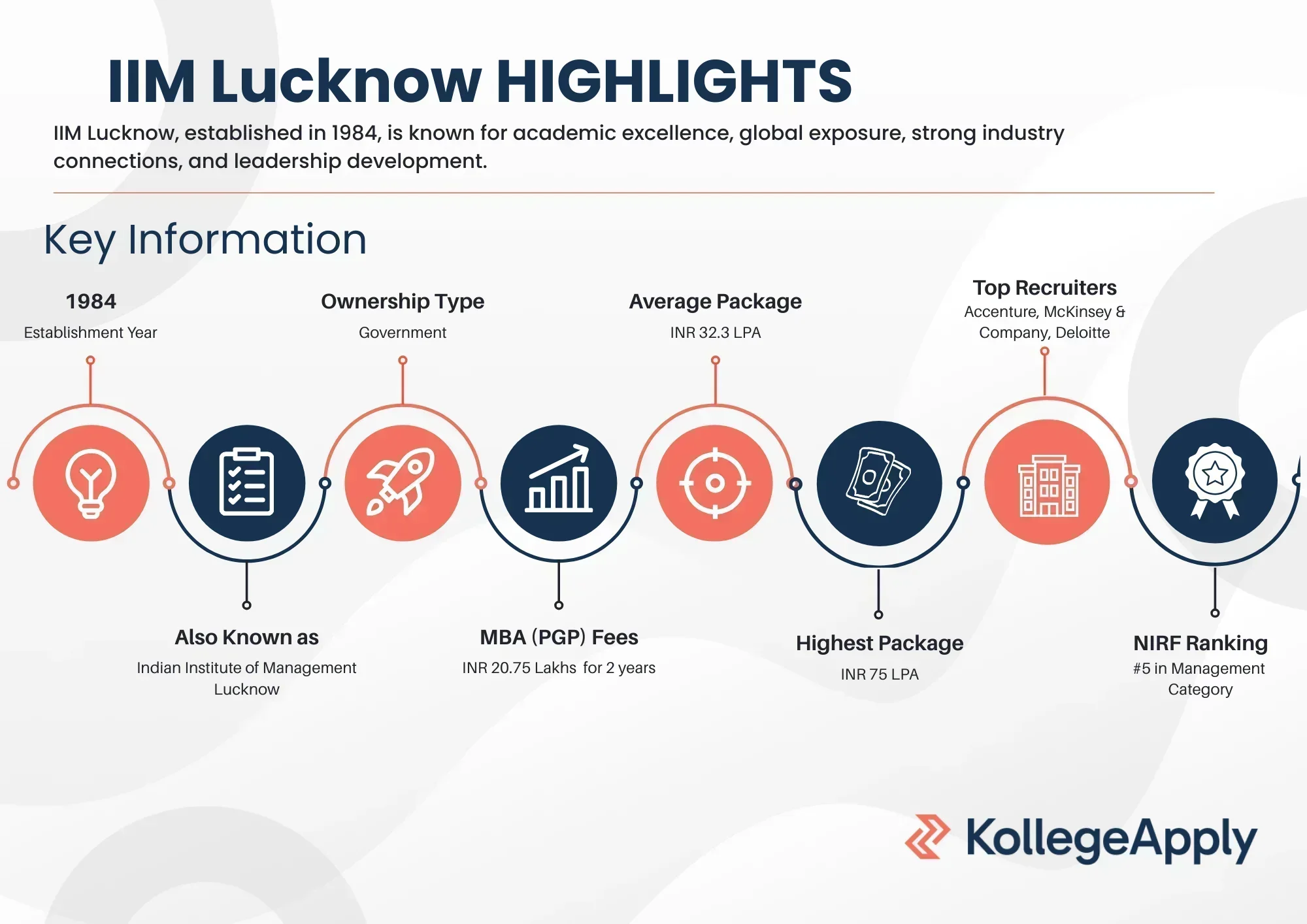 IIM Lucknow, established in 1984, is one of India's premier management institutes and the fourth IIM set up by the Government of India. Accredited by AMBA and AACSB, it offers a range of postgraduate, executive, and doctoral programs in management, with its flagship PGP (MBA) program being highly sought after. Admission is based on CAT scores, and the fee for the PGP is approximately INR 20.75 lakh.