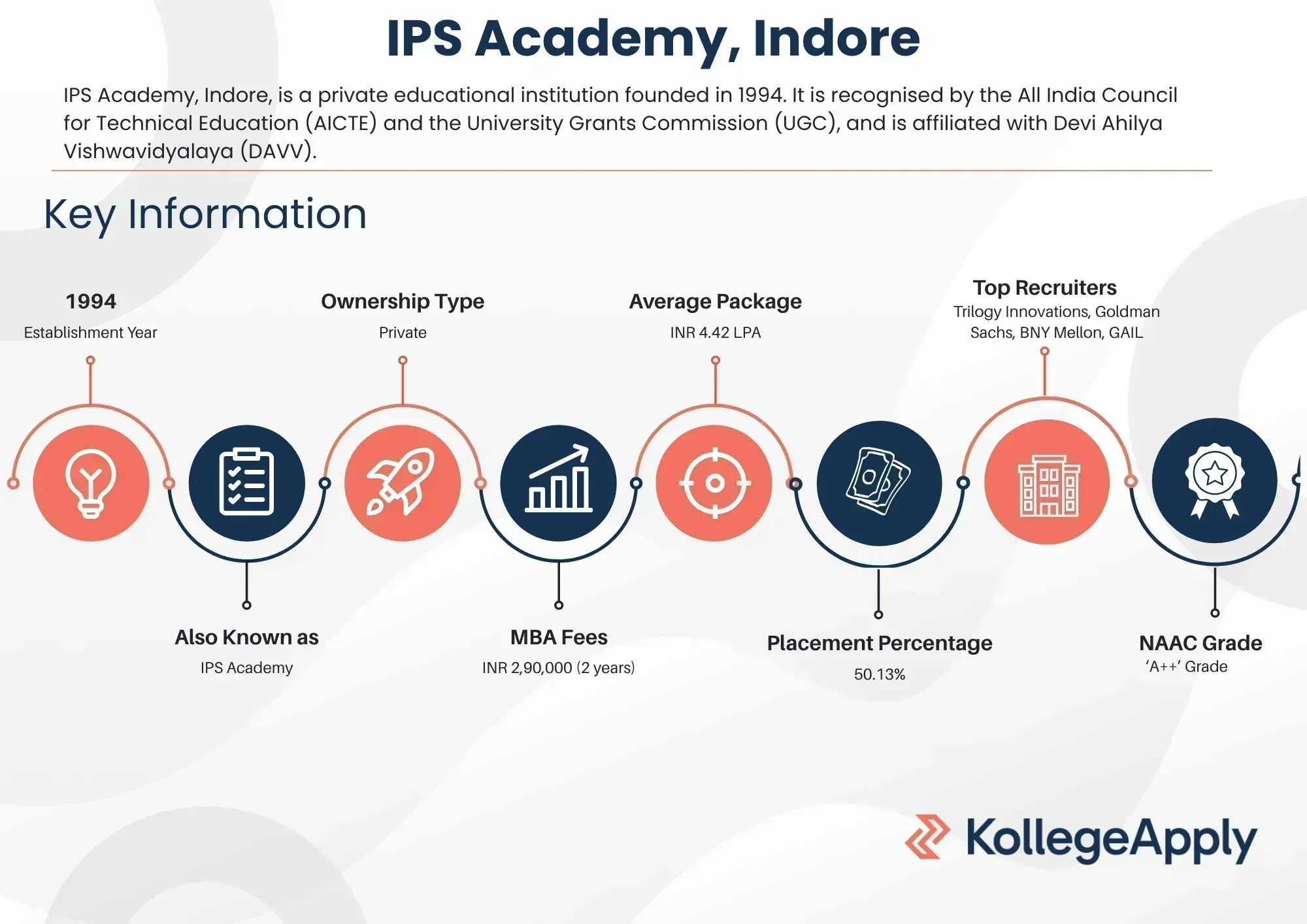 The official 2025 placement report of IPS Academy Indore is yet to be released. As per the 2024 placement drive, the median package offered was INR 4.42 LPA. Approximately 380 students were placed in leading companies, such as Trilogy Innovations, Goldman Sachs, BNY Mellon, GAIL, IOCL, BCPL, National Instruments, Jaro Group, and Amazon.