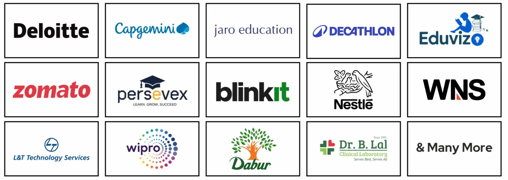 Top recruiters include Deloitte, Capgemini, Wipro, L&T Technology Services, Jaro Education, Nestlé, Dabur, Zomato, Blinkit, Decathlon, and many more.