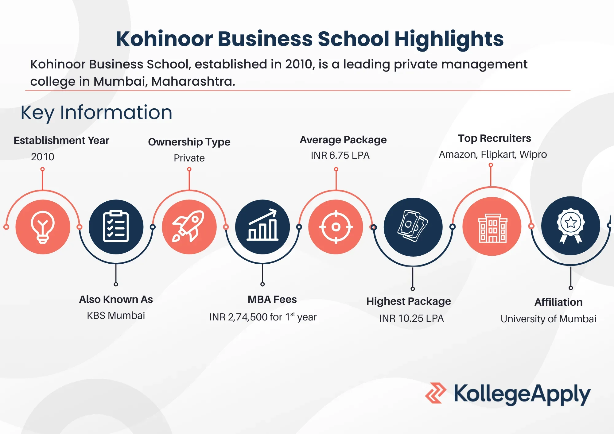 Kohinoor Business School has a strong placement record. As per the recent KBS Mumbai placement drive, the highest package stood at INR 10.25 LPA, while the average package was INR 6.75 LPA. Amazon, Flipkart, Wipro, HDFC Bank, ICICI Bank, Capgemini, ITC, Godrej, and JK Tyres are some of the top recruiters.