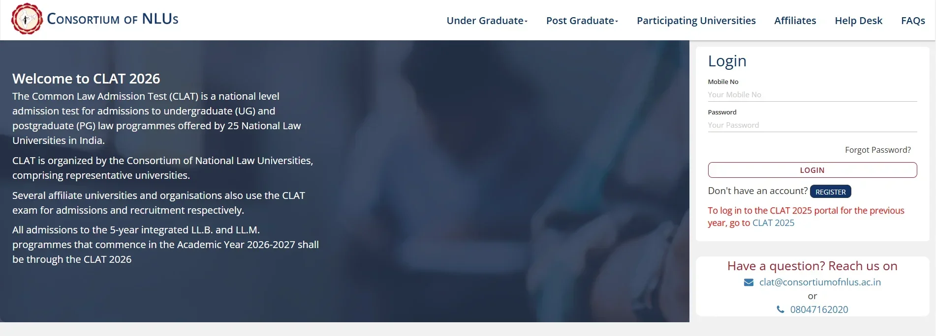 - Go to the official website of the CLAT 2026 exam and register by entering your name, mobile number, and email ID.