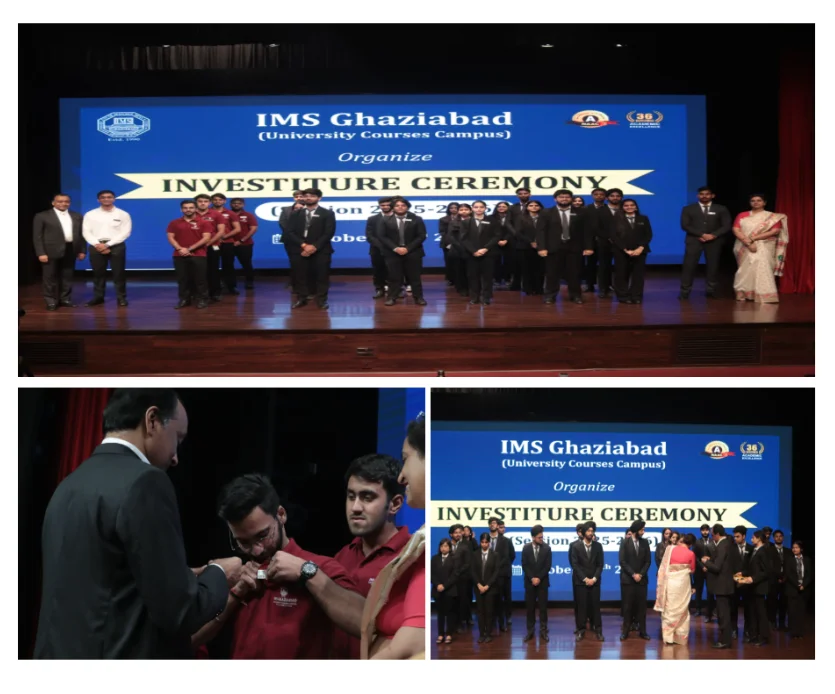 IMS Ghaziabad (University Courses Campus) proudly hosted the Investiture Ceremony 2025, a momentous occasion celebrating leadership, responsibility, and excellence. The ceremony marked the formal induction of the newly appointed Student Council members, symbolizing the beginning of their journey as torchbearers of discipline, dedication, and teamwork.