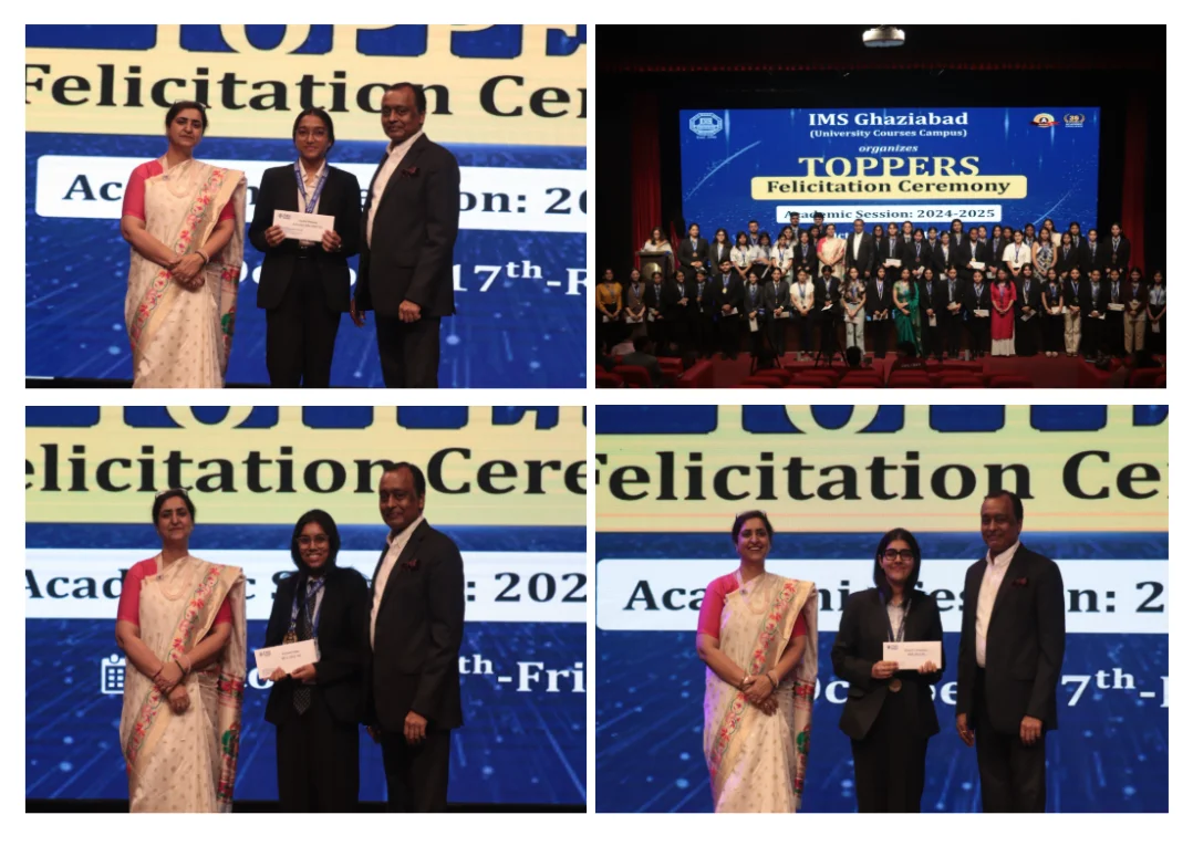 IMS Ghaziabad (University Courses Campus) proudly organized the Topper Felicitation Ceremony to honor and celebrate the academic excellence of its outstanding achievers. The event recognized the relentless hard work, perseverance, and dedication of students who attained remarkable success in their respective programs.