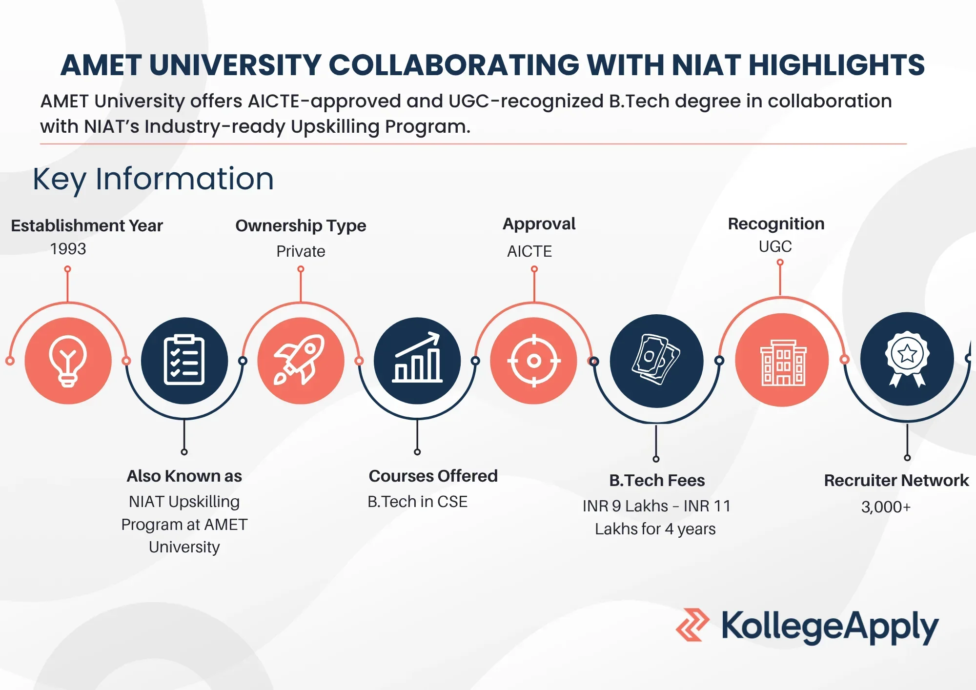 AMET University, in collaboration with NIAT, offers a full-time B.Tech in Computer Science and Engineering with the NIAT Industry-ready Upskilling Program.