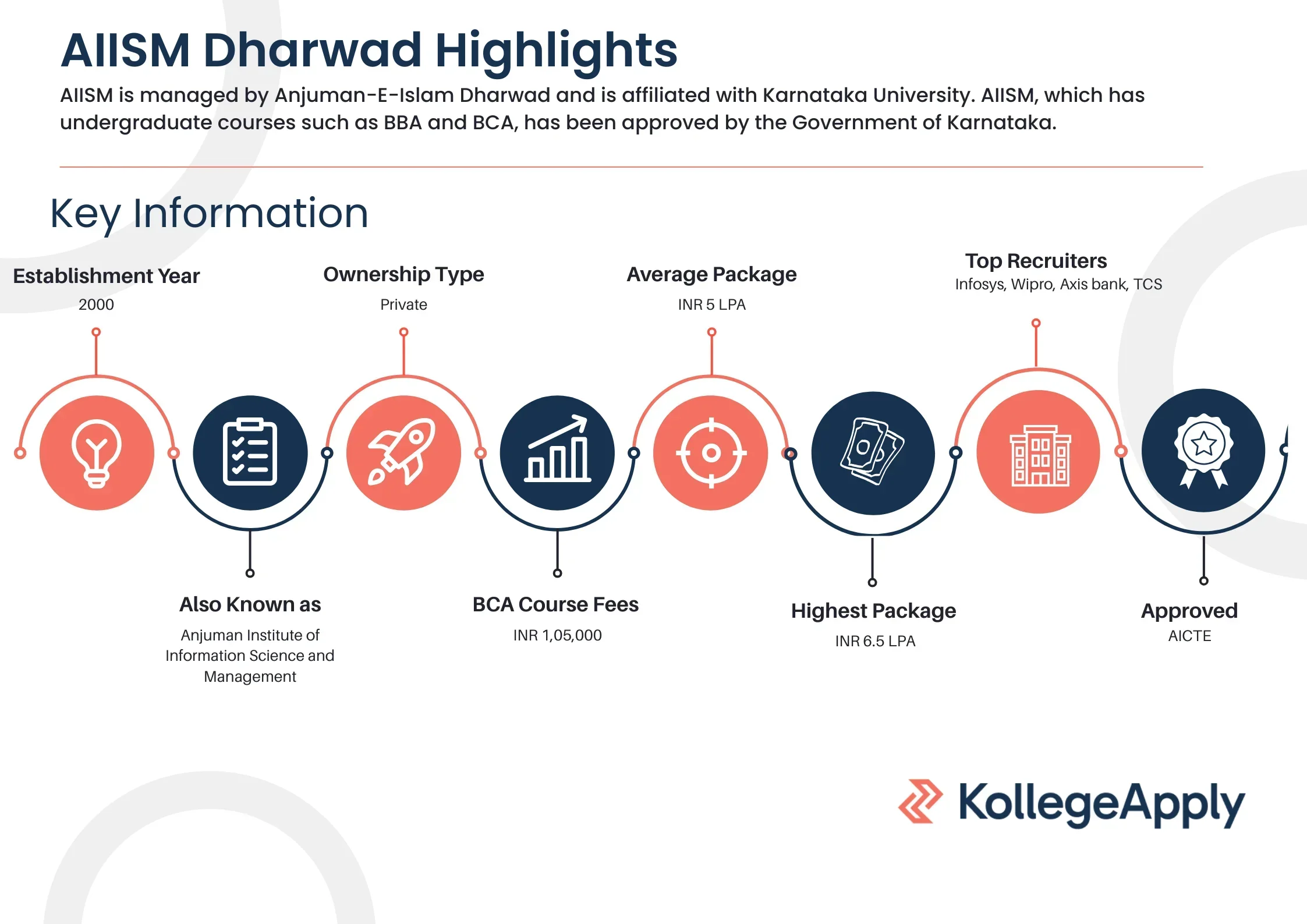 Established in 2000, the Dharwad-based Anjuman Institute of Information Science and Management (AIISM) is managed by Anjuman-E-Islam Dharwad and is affiliated with Karnataka University. AIISM, which has undergraduate courses such as BBA and BCA, has been approved by the Government of Karnataka and AICTE. The flagship BCA course fees is INR 1.5 lakh, and admissions are based on a pass in CBSE Class 12th or Karnataka 2nd PUC with 50% marks. The admissions are strictly merit-based, considering the exam scores.