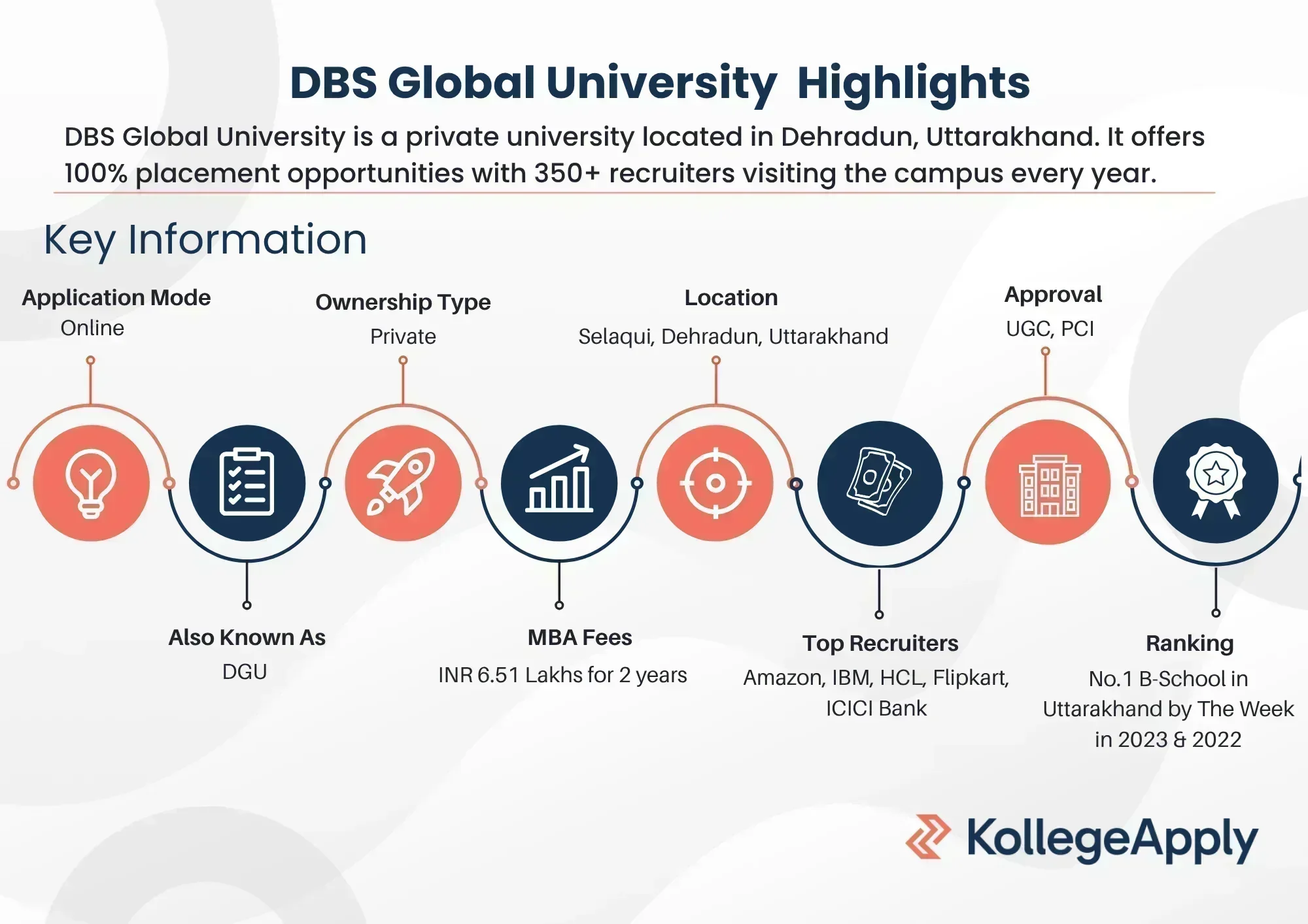 DBS Global University is a well-known private university in Dehradun, Uttarakhand. It is approved by the University Grants Commission (UGC) and is a member of the Association of Indian Universities (AIU). DGU is ranked No.1 B-School in Uttarakhand by The Week in 2023 and 2022. It is also ranked among the Top 50 Standalone Best B-Schools in India by India Today in 2023.