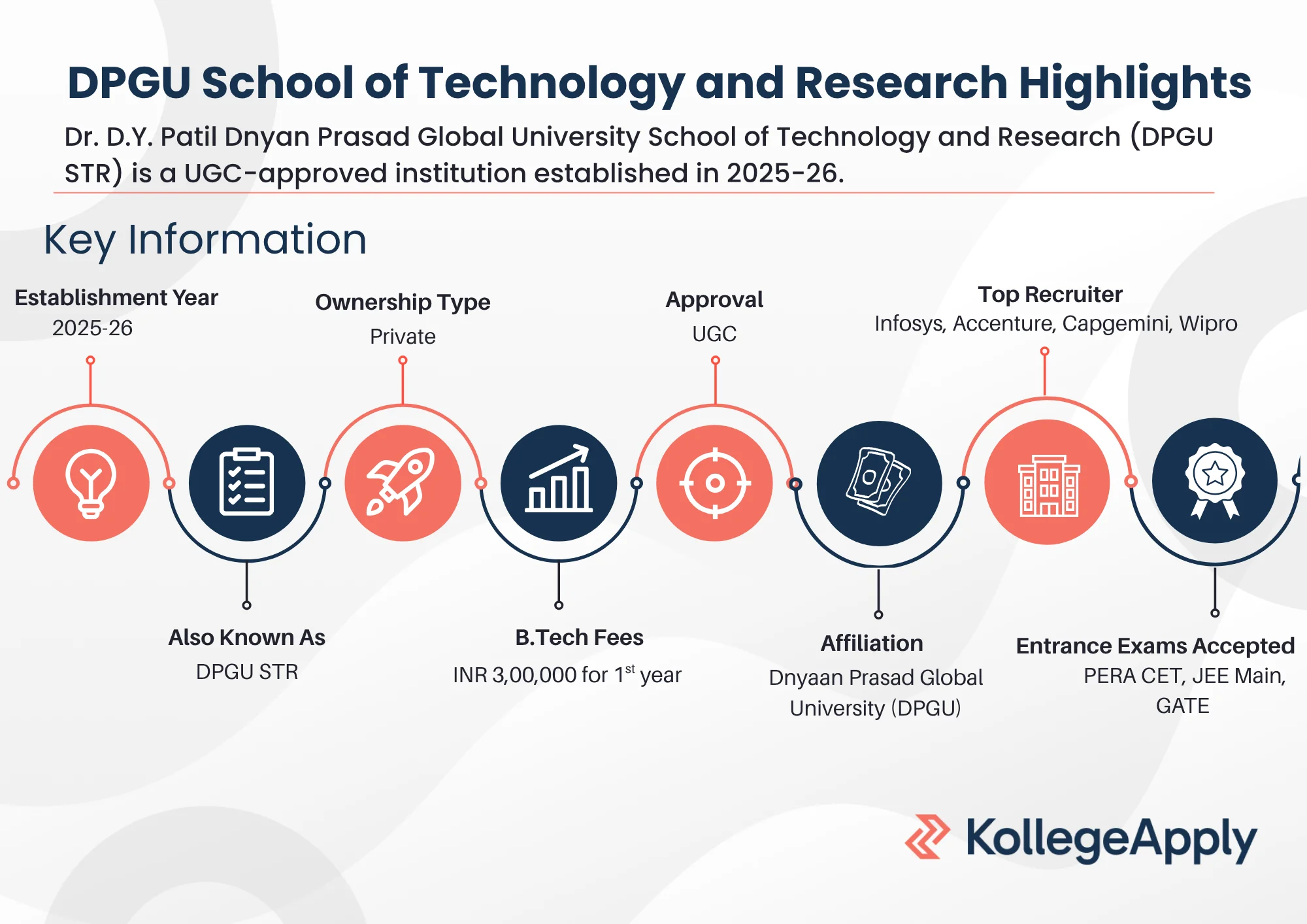Dnyaan Prasad Global University’s School of Technology and Research (DPGU STR) is a private engineering institute in Pune, Maharashtra. It was established in 2025-26 under the Dr. D.Y. Patil Unitech Society. The institute is affiliated with Dnyaan Prasad Global University and is approved by the UGC.
