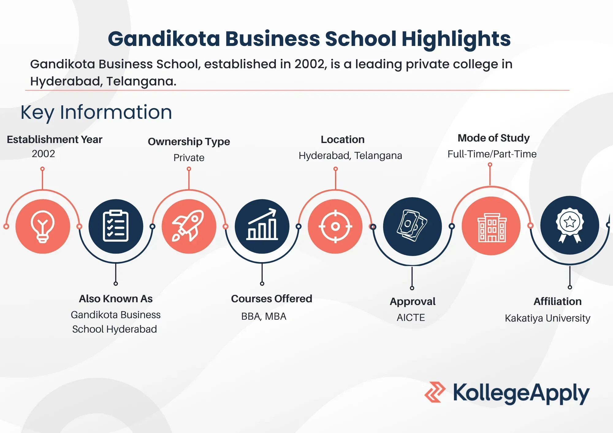 Gandikota Business School is a private management institute located in Hyderabad, Telangana. Established in 2002, the institute is affiliated with Kakatiya University and approved by the All India Council for Technical Education (AICTE). The institute offers undergraduate and postgraduate courses in business and management studies.