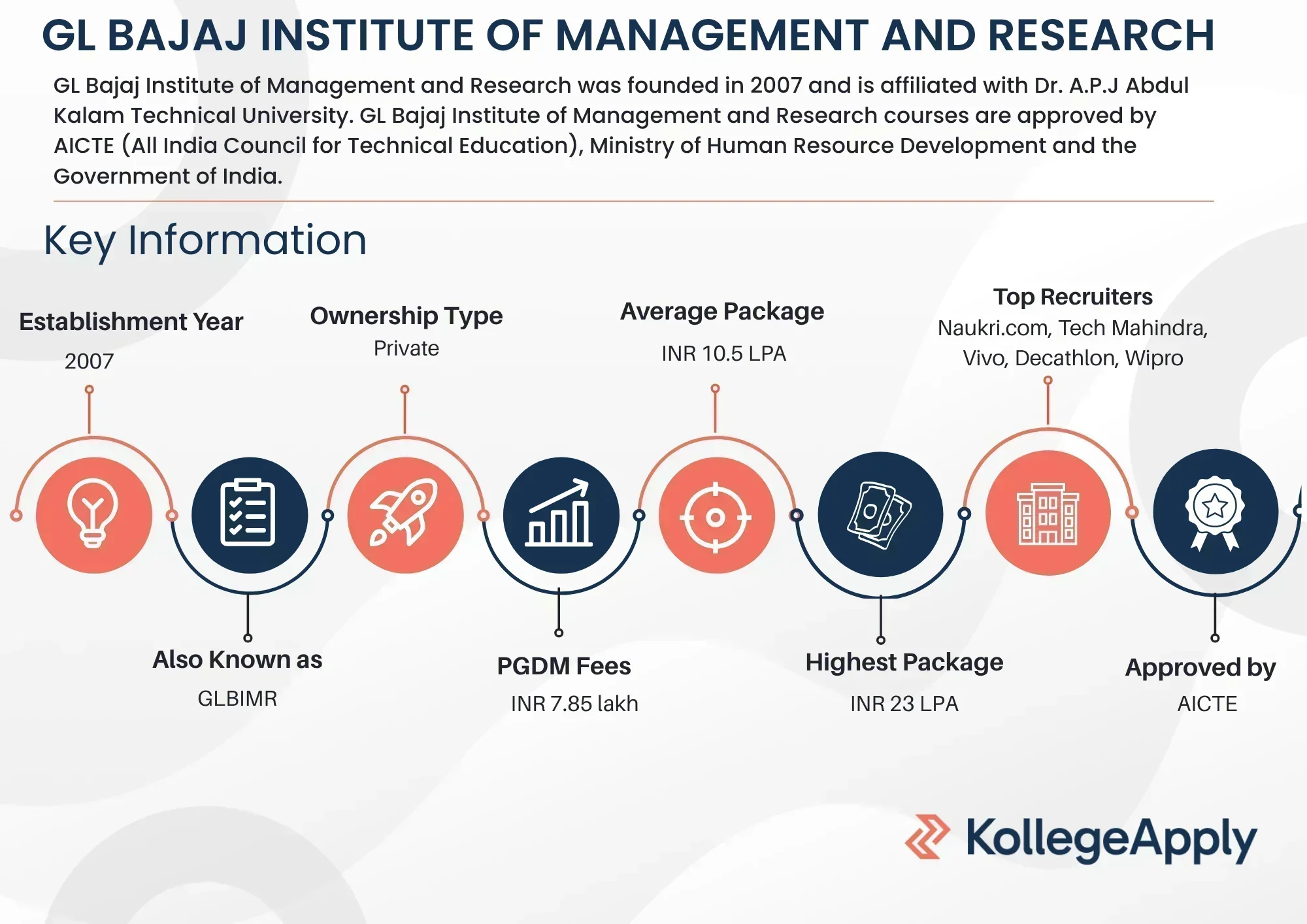 GL Bajaj Institute of Management and Research was founded in 2007 and is affiliated with Dr. A.P.J Abdul Kalam Technical University. GL Bajaj Institute of Management and Research is one of the top B-Schools in Greater Noida, offering Post Graduate Diploma in Management (PGDM) approved by AICTE (All India Council for Technical Education), Ministry of Human Resource Development and the Government of India.