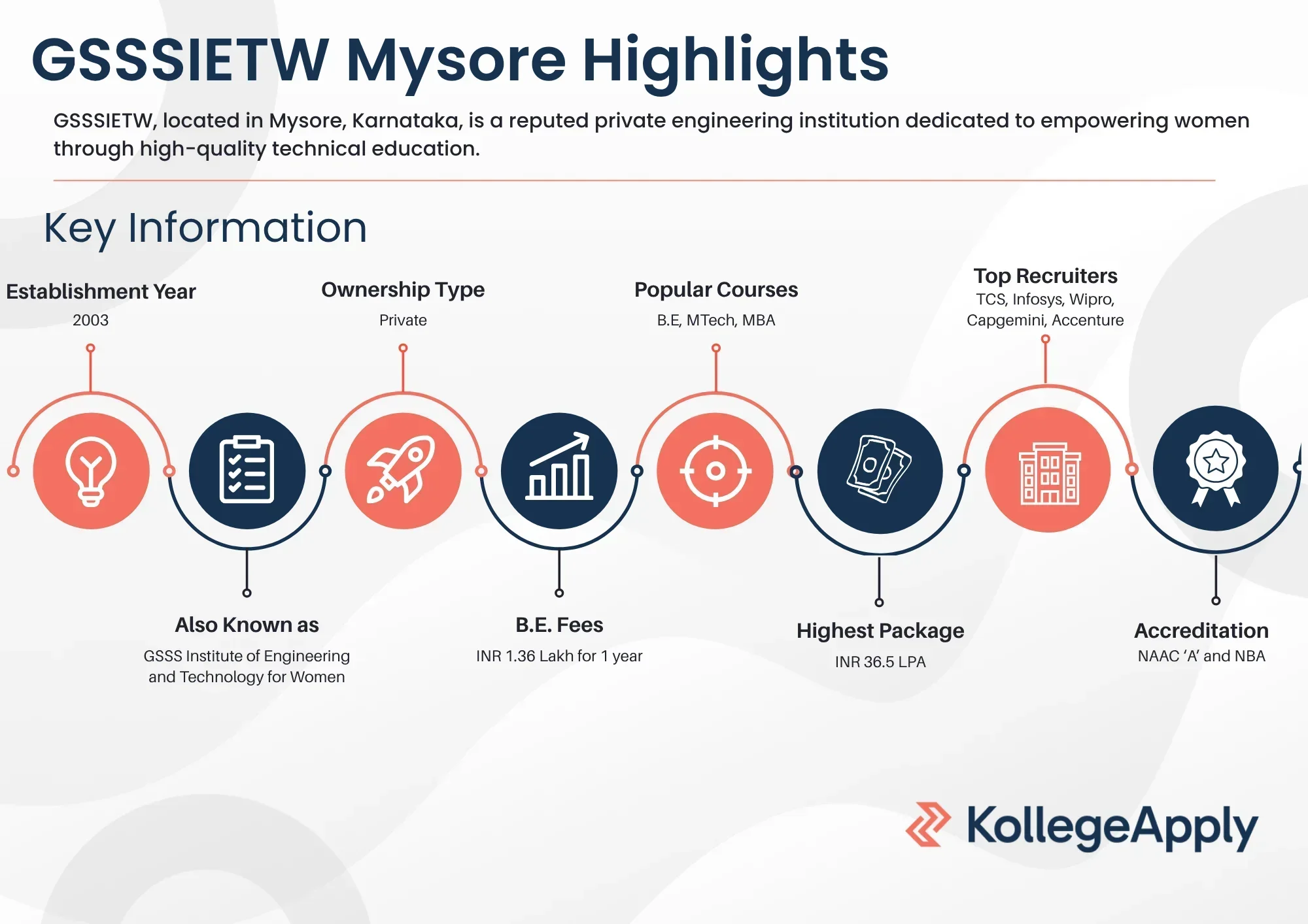 GSSS Institute of Engineering and Technology for Women has received accolades for its outstanding women's technical education, academic performance, and stellar placement rates. It has grown to become one of the top women's engineering colleges in Karnataka over the years.