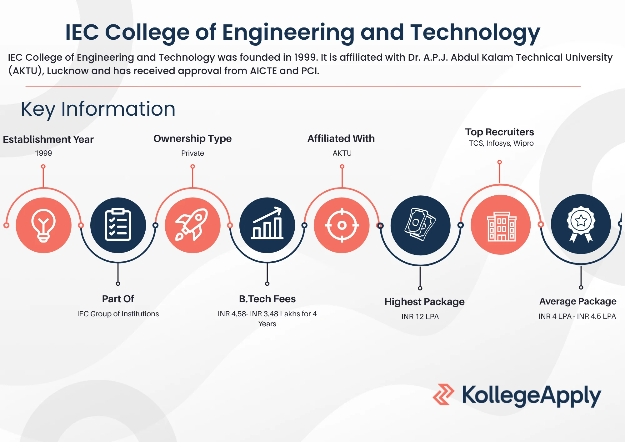 IEC College is a private engineering college affiliated with Dr A.P.J. Abdul Kalam Technical University (AKTU), Lucknow and approved by AICTE and PCI.