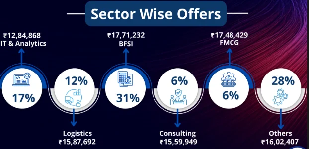 At IIM Jammu, the BFSI, IT & Analytics, Consulting, and Logistics sectors offered the most roles in 2025, with BFSI leading at 31% of total offers.