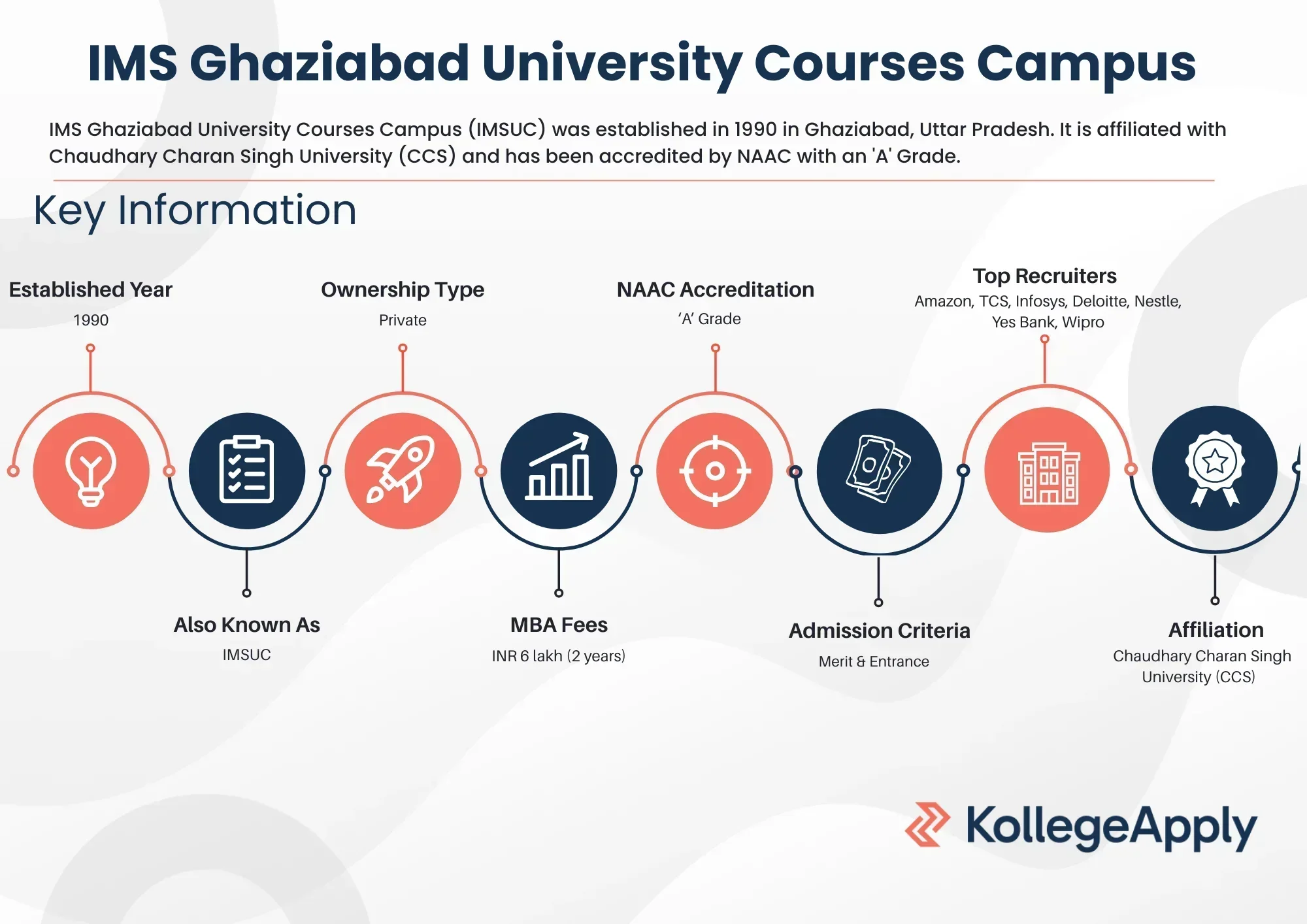 IMS Ghaziabad University Courses Campus (IMSUC) was established in 1990 in Ghaziabad, Uttar Pradesh. IMSUC is affiliated with Chaudhary Charan Singh University (CCS) and has been certified with an 'A' Grade by the NAAC. Also, the IMS Ghaziabad University Courses Campus is an ISO (9001:2015 & 50001:2018) certified institution.