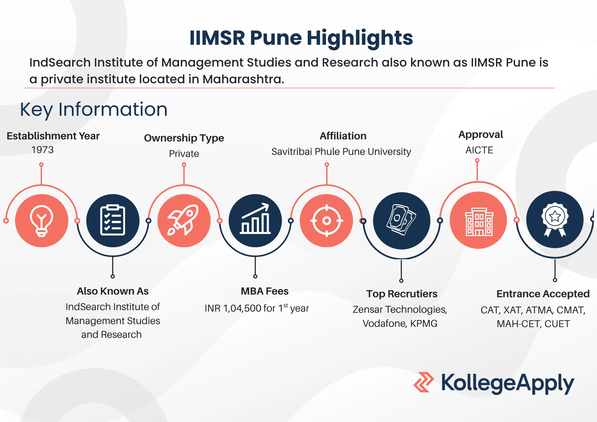 Admissions to the IIMSR Pune courses are entrance exam-based. For MBA admission, the candidates should hold a Bachelor's degree with a minimum of 50% marks from a recognized institution and should take entrance exams like MH-CET, CAT, CMAT, ATMA, or XAT applicable to the candidate.