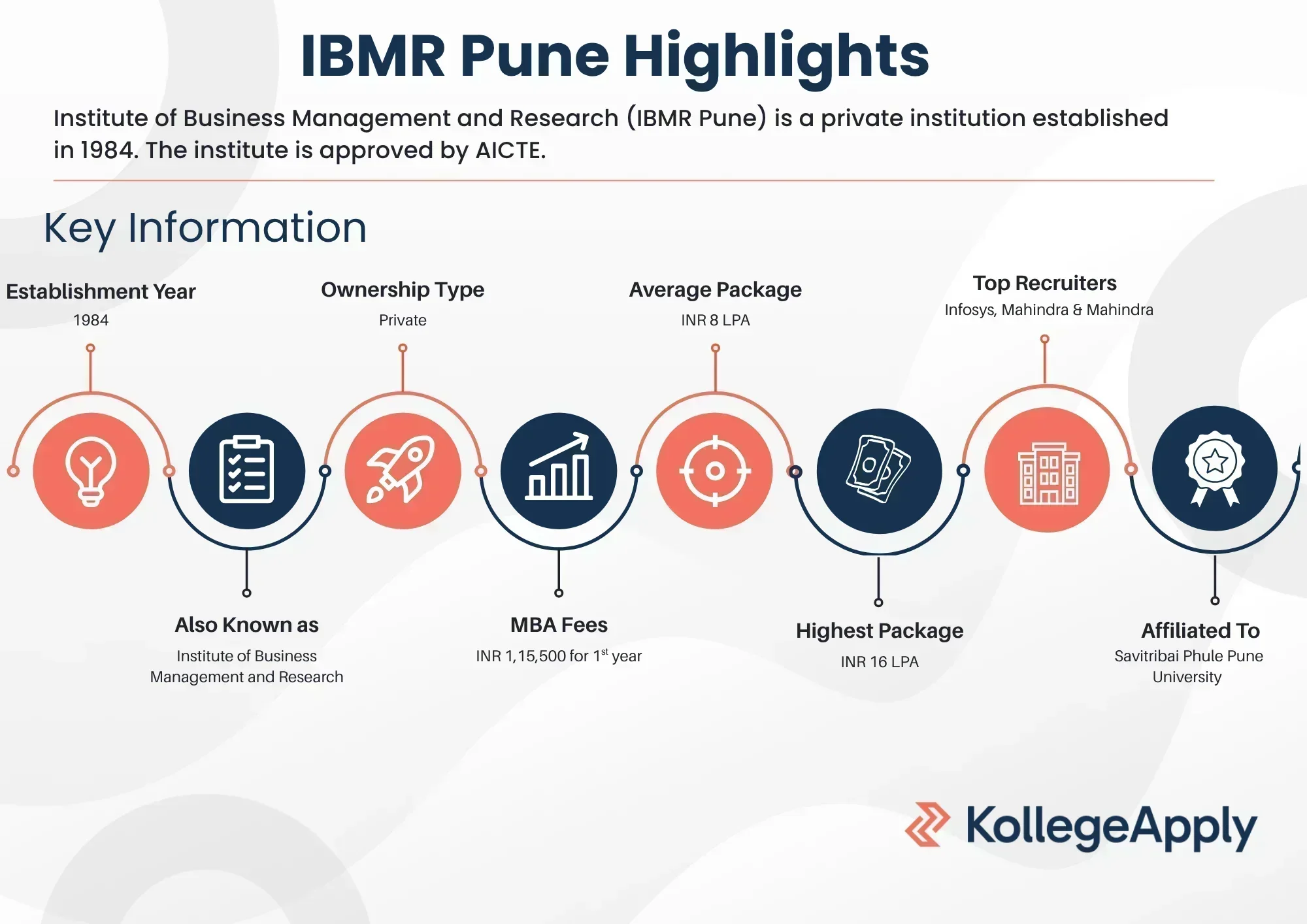 In the 2024-25 placement season, the highest package offered at IBMR Pune was INR 16 LPA. The average package was INR 8 LPA. Top recruiters include Infosys, Mahindra & Mahindra, and ICICI Prudential.