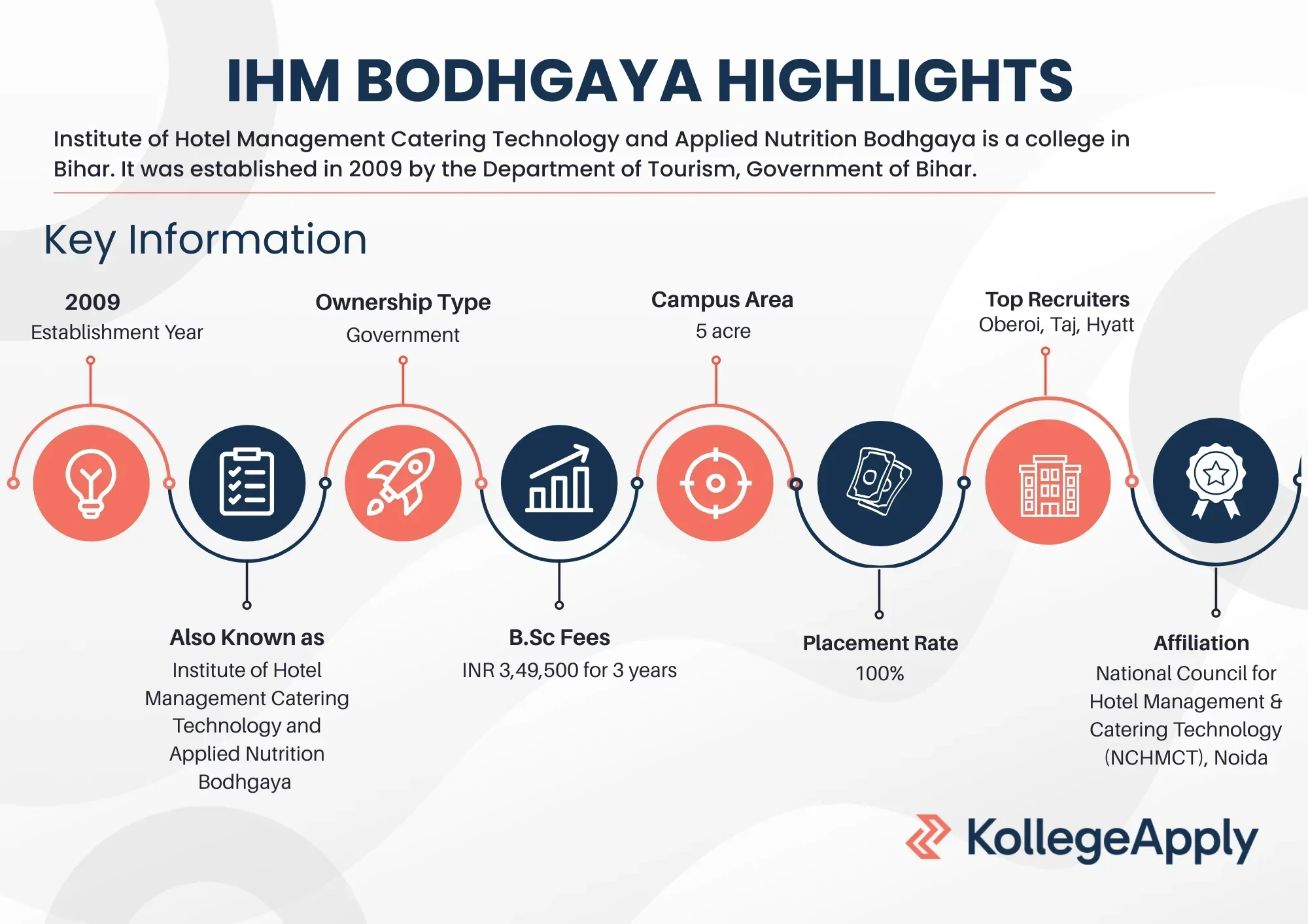 Institute of Hotel Management Catering Technology and Applied Nutrition Bodhgaya follows a structured admission process for all its courses. Admission to the B.Sc course is based on NCHMCT-JEE, conducted by NCHMCT. Diploma admissions are based on merit in 10+2. Students can apply for admission via the college website.