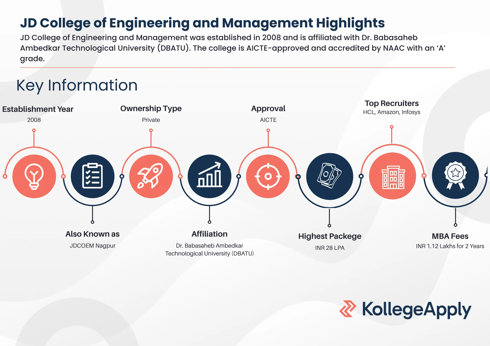 Some of the leading recruiters of JDCOEM include HCL, Amazon, Infosys, Cognizant, TCS, Tech Mahindra, etc.
