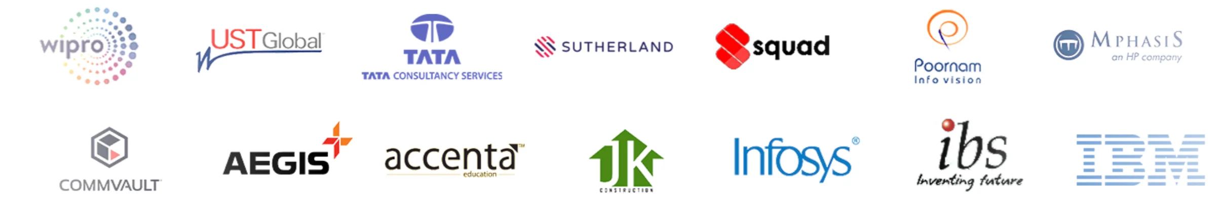 Wipro, IBM, ZAHRA, Infosys, TCS and Sutherland
