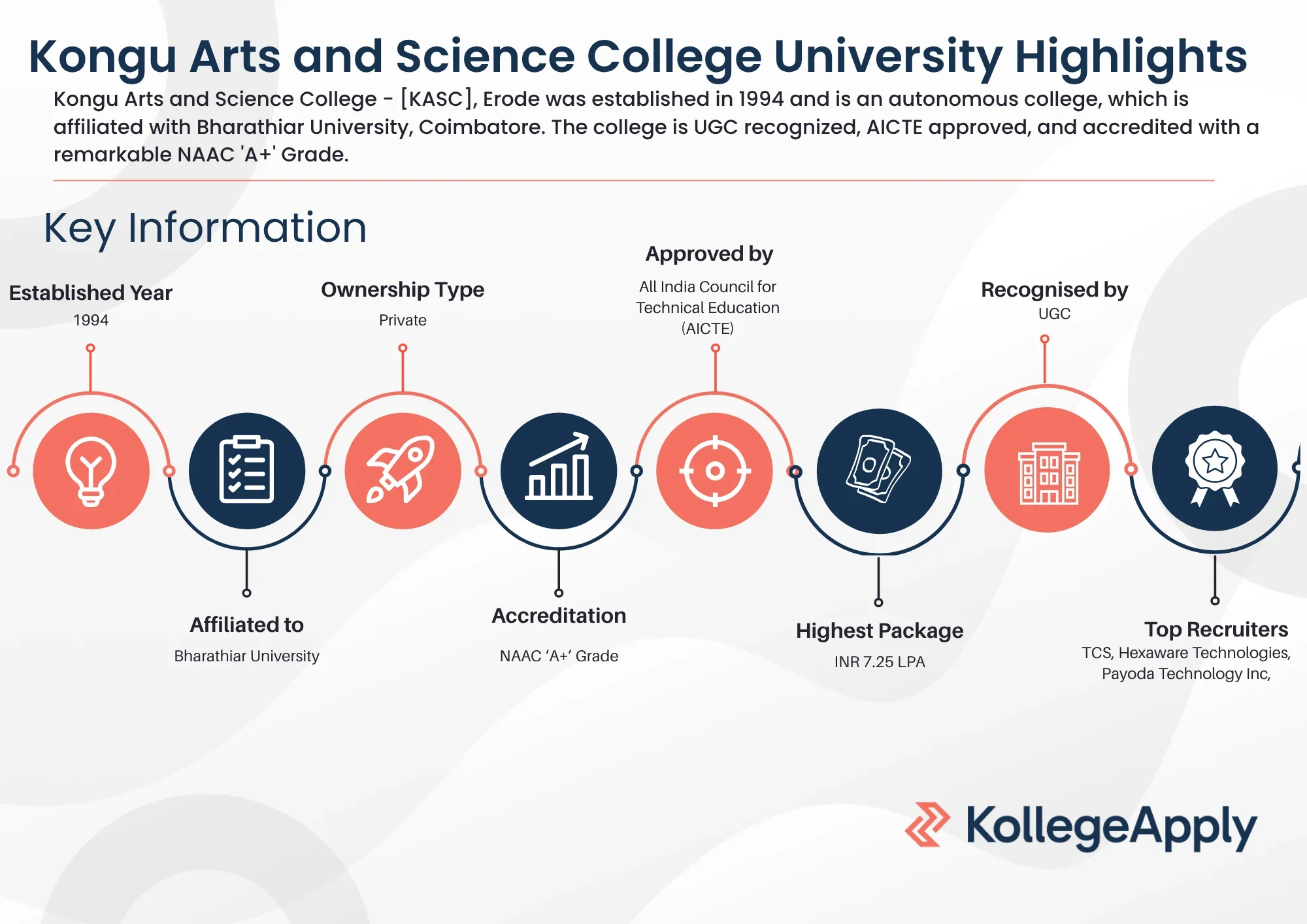 While exact figures may vary annually, Kongu Arts and Science College has a strong placement record. Top companies offer competitive packages, and many students are placed in reputed IT, finance, and service-sector companies.