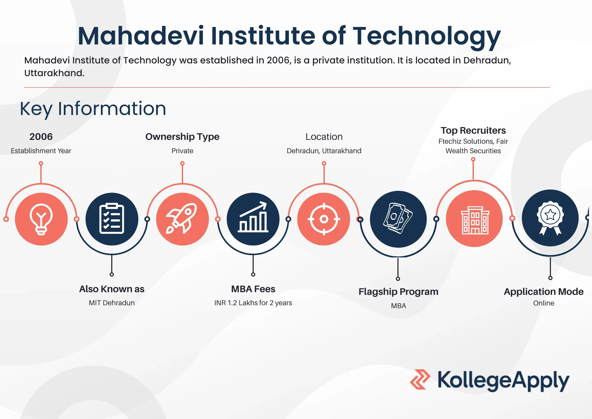 Mahadevi Institute of Technology, Dehradun, provides new and updated infrastructure, latest labs, collaborations with the industry, active students' societies, and a career-centric environment through skill-based learning with working support placement in IT, business, and media sectors.