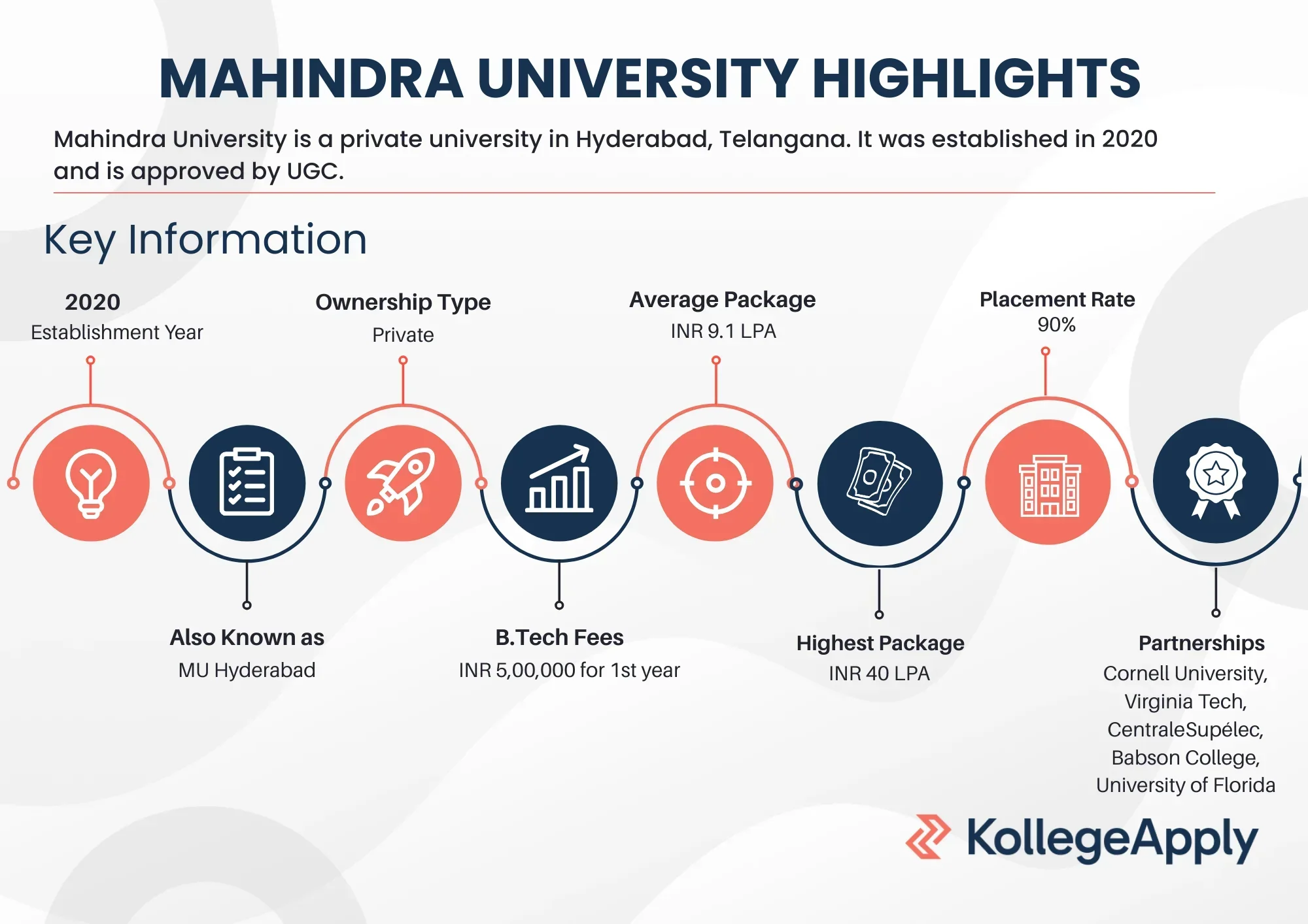 Mahindra University Hyderabad offers UG, PG, and PhD courses in engineering, law, management, design, media, and life sciences.