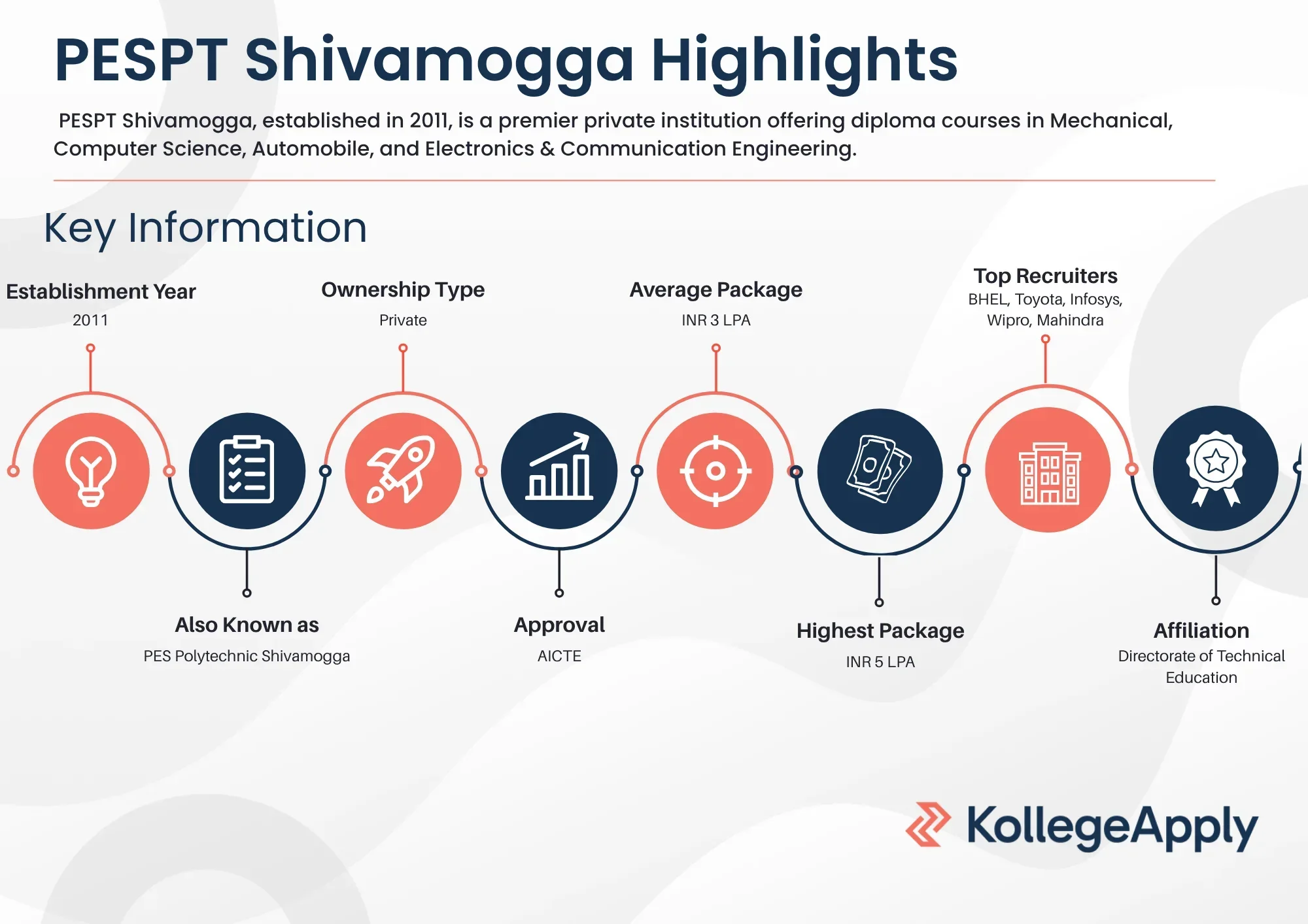 Students have been recruited by companies such as Toyota, Ford Motors, Infosys, Wipro, TCS, BHEL, and Toshiba at PES Polytechnic Shivamogga.