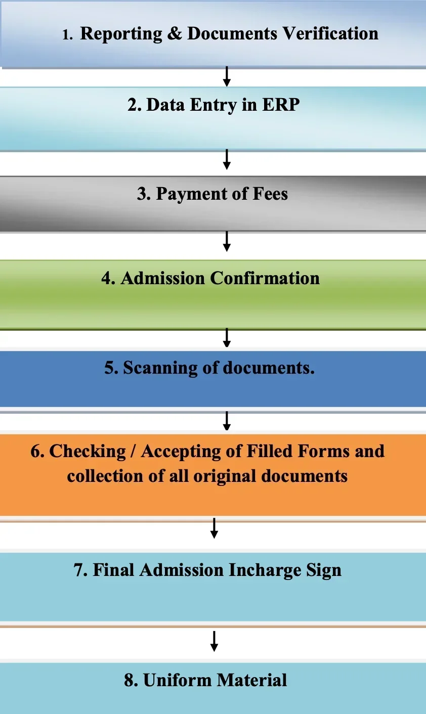 Required documents include 10th & 12th marksheets, entrance exam scorecard, allotment letter, domicile, caste certificate (if applicable), photo ID, and passport-size photos.
