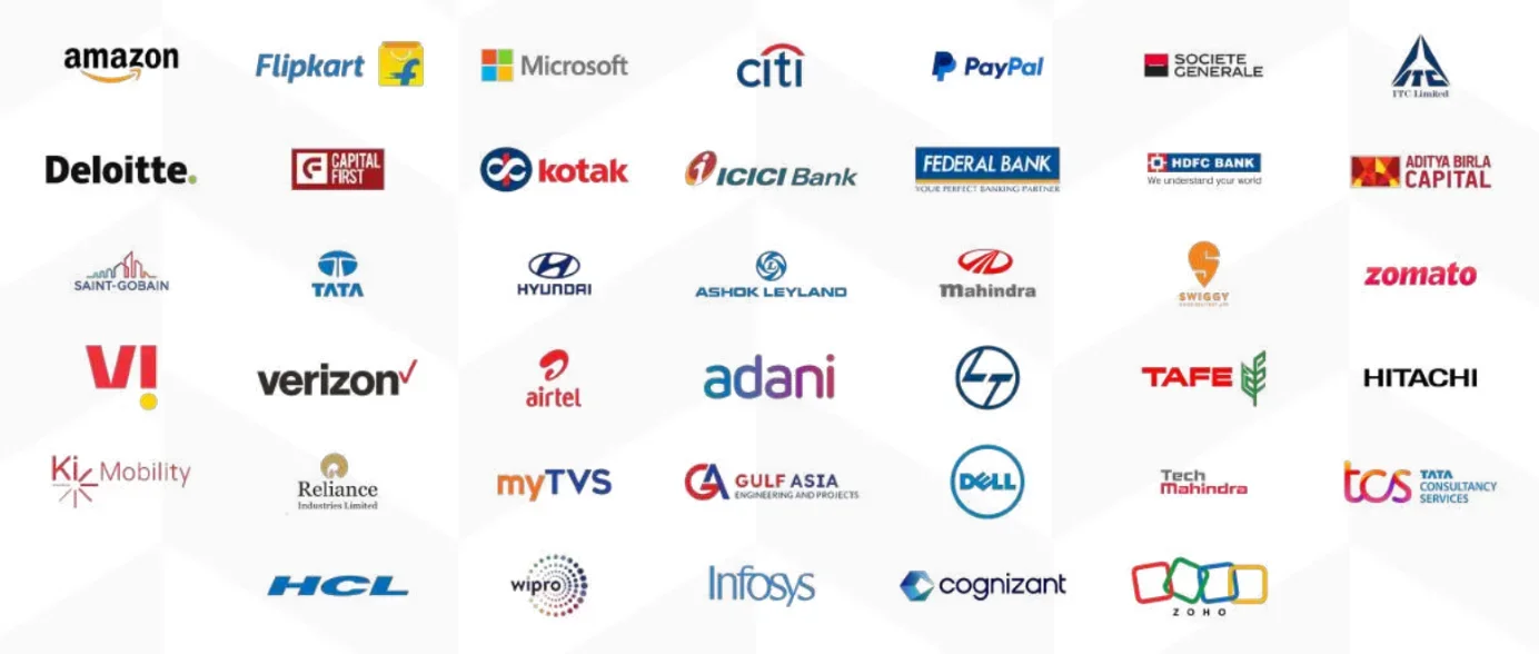 | Top Recruiters | Flipkart, Amazon, TCS, Deloitte, Microsoft, Citi, Kotak, ICICI Bank, Airtel, Verizon, Infosys, Cognizant, Tech Mahindra, Wipro, Swiggy, Zomato |