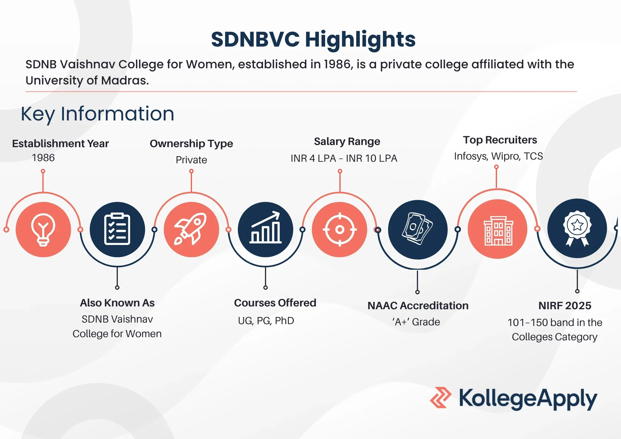 SDNB Vaishnav College for Women offers UG, PG, and PhD courses in Arts, Science, Commerce, and Management fields.