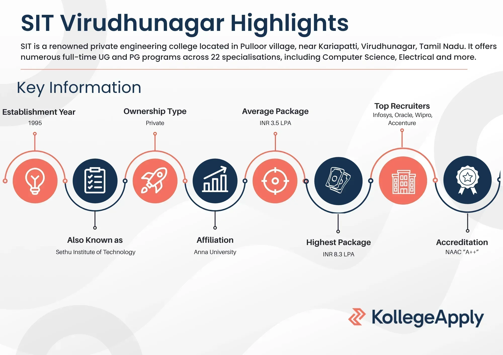 The institute has a very active and efficient training & placement cell, headed by the Vice Principal of the institute. Besides arranging recruitment drives, the placement cell offers services for all-around development of the students as well as placement of their choice. TPC organises internal and external training sessions for the students to train and prepare them to crack job interviews. Internal training involves educating students in general aptitude, technical, communication, and soft skills. External training involves company-specific preparation and interview training with the help of SIT Virudhunagar Placements.