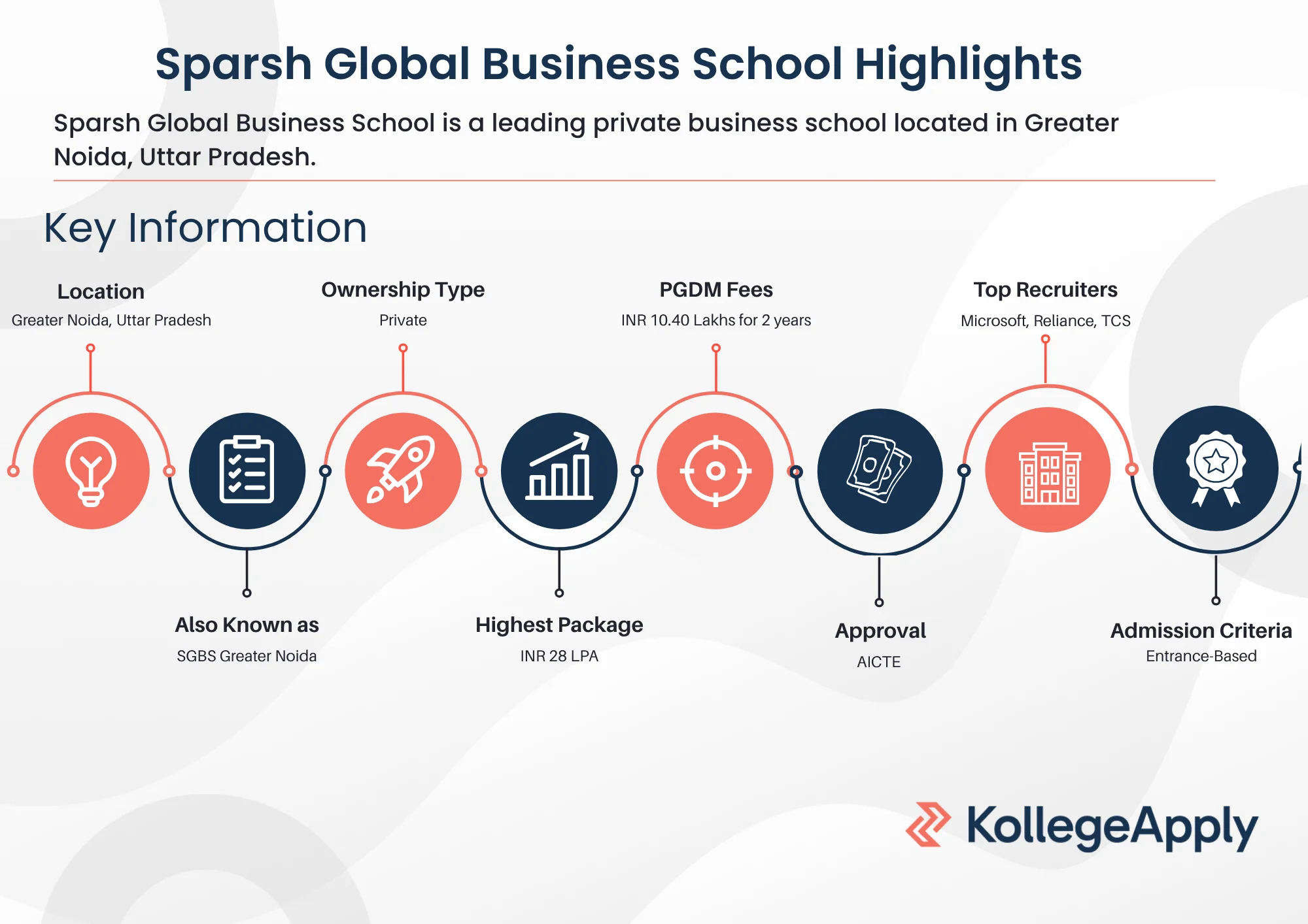 Admissions at SGBS Greater Noida are based on national-level entrance exams like CAT, XAT, MAT, NMAT, CMAT, ATMA, SNAP and GMAT, followed by a Personal Interview (PI). The institute also boasts a strong placement record, with top recruiters such as Microsoft, Deloitte, TCS, Infosys, and KPMG offering packages of up to INR 28 LPA.