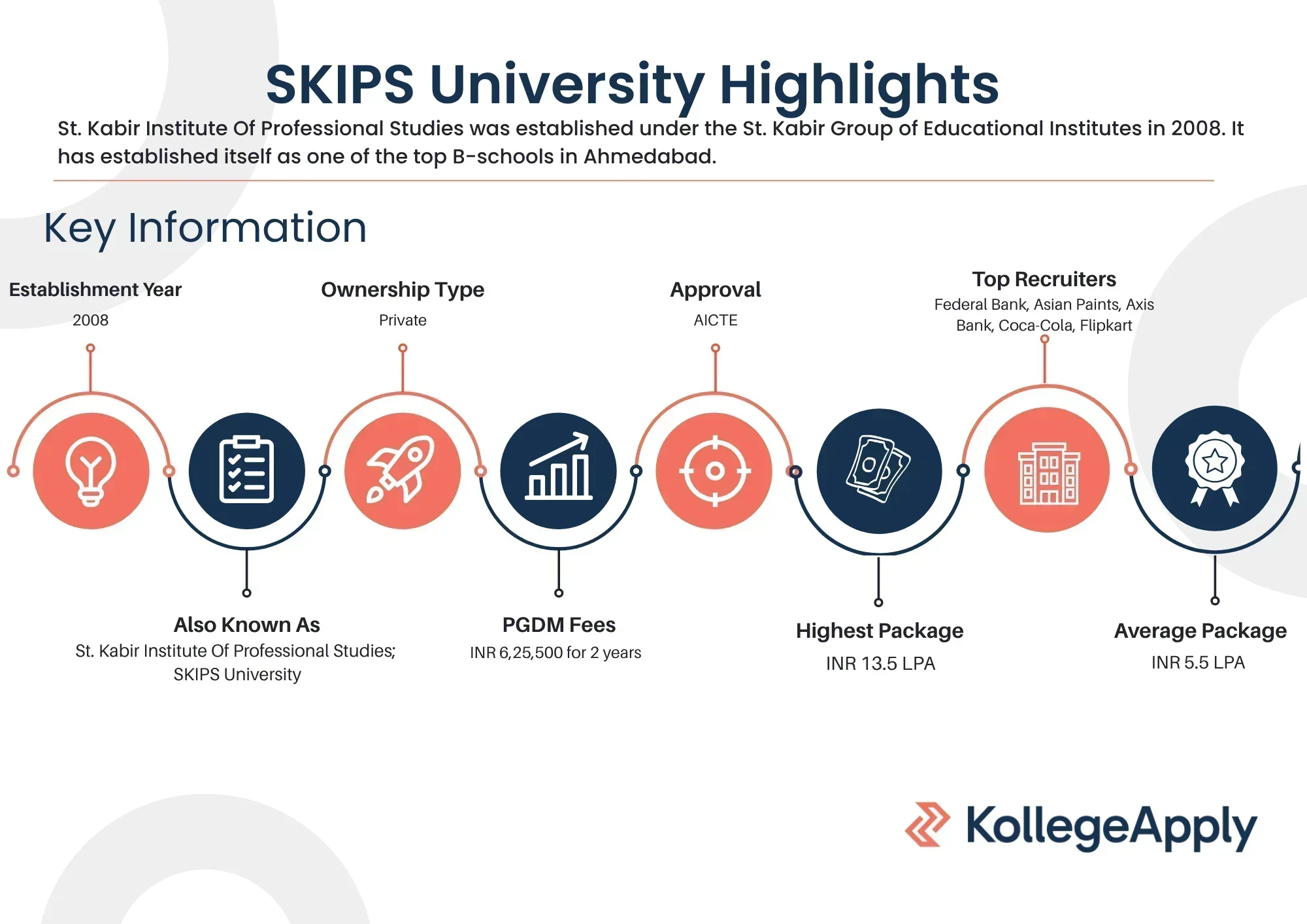 SKIPS University (St. Kabir Institute Of Professional Studies) was established under the St. Kabir Group of Educational Institutes in 2008. The institute has established itself as one of the top B-schools in Ahmedabad. It provides excellent facilities to the students, including a library, well-furnished and AC classrooms, a spacious seminar hall, a computer lab with internet connectivity and common rooms.