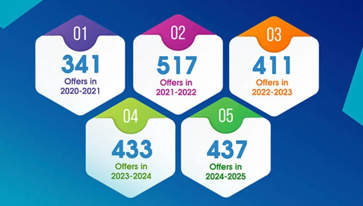 St Xaviers Catholic College of Engineering has demonstrated consistent excellence in campus placements, reflecting its strong industry connections and student preparedness. In the academic year 2024-2025, the college achieved a highest package of INR 9 LPA, with an average salary of INR 2.84 LPA, highlighting a balance between top-tier opportunities and overall employability. Over the last five years, the college has maintained an impressive placement track record, with an average of 415+ offers annually and a total of 437 offers made in 2024-2025 alone.