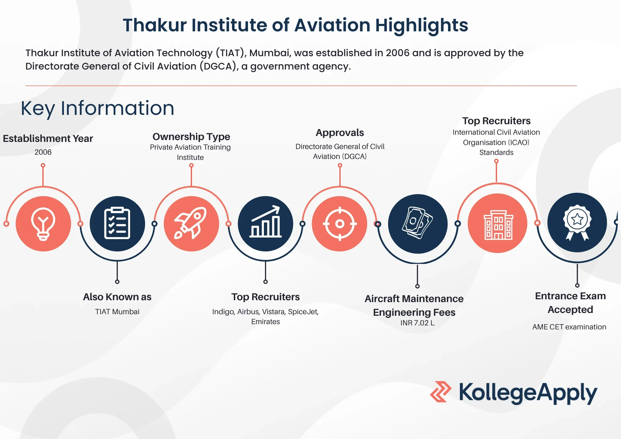 Thakur Institute of Aviation Technology (TIAT), Mumbai, was established in 2006 and is approved by the Directorate General of Civil Aviation (DGCA), a government agency. The institute focuses on world-class training in Aviation Maintenance Engineering and related fields. Additionally, it is affiliated with International Civil Aviation Organisation thereby offering students global recognition and credibility. Thakur Institute of Aviation Technology courses are designed with a strong emphasis on practical training supported by state-of-the-art labs, hangars, and simulators. The regulated Thakur Institute of Aviation Technology admission process includes national-level entrance tests and counselling for merit-based intake.