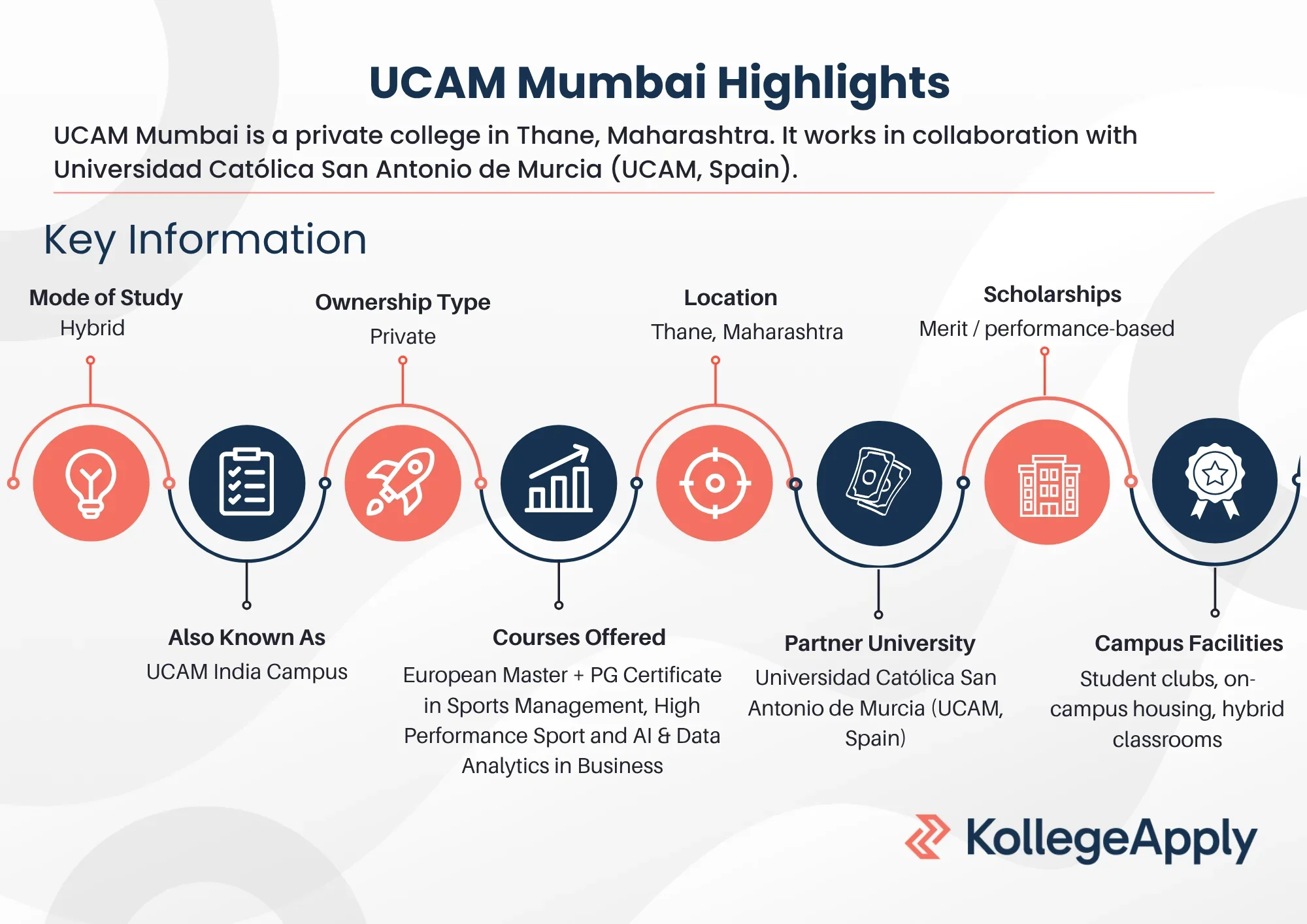 UCAM Mumbai offers European Master + PG Certificate programs in High Performance Sport, Sports Management, and Artificial Intelligence & Data Analytics in Business with a hybrid (on-campus + online) mode.