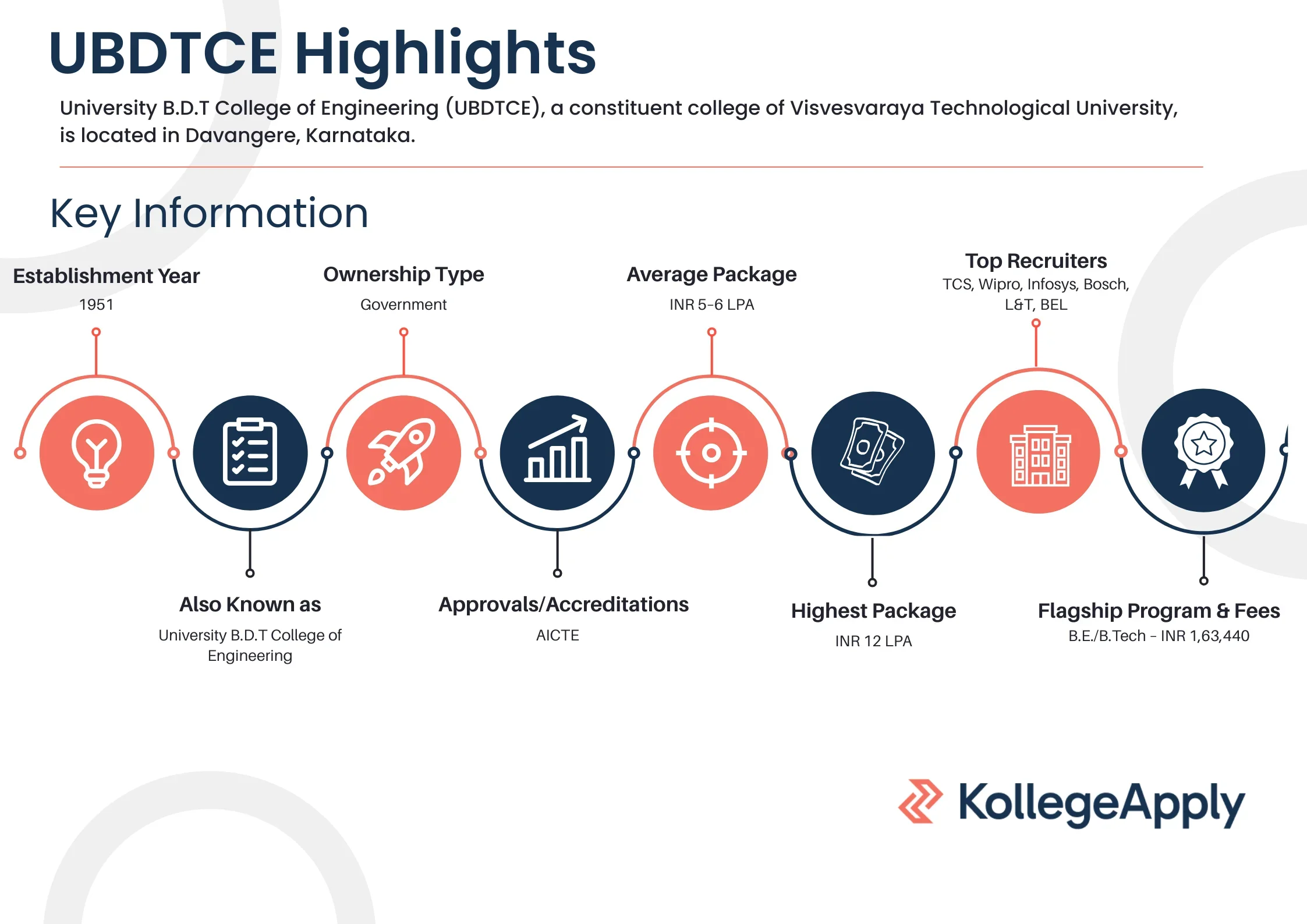 University B.D.T College of Engineering (UBDTCE) recorded a highest package of INR 12 LPA and an average of INR 5–6 LPA in 2024, with recruiters like TCS, Infosys, and Bosch.