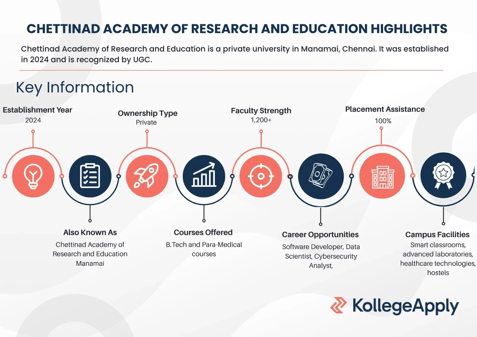 Chettinad Academy of Research and Education is famous for its UG and PG programs in medical, paramedical, engineering and healthcare fields with 100% placement assistance.