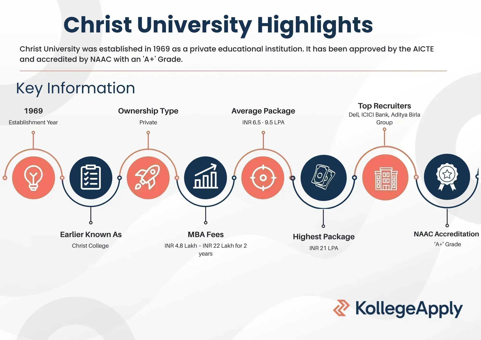 The 2025 Christ University placement report is not available yet. However, the highest package offered during the previous placements was INR 20 LPA. Some of the top companies that took part in the drive were Dell, ICICI Bank, Aditya Birla Group, Bosch, Wells Fargo, Swiggy, Salesforce, FIS Global, Deloitte, EY, PwC, Deutsche Bank, IBM, Oracle and many others.