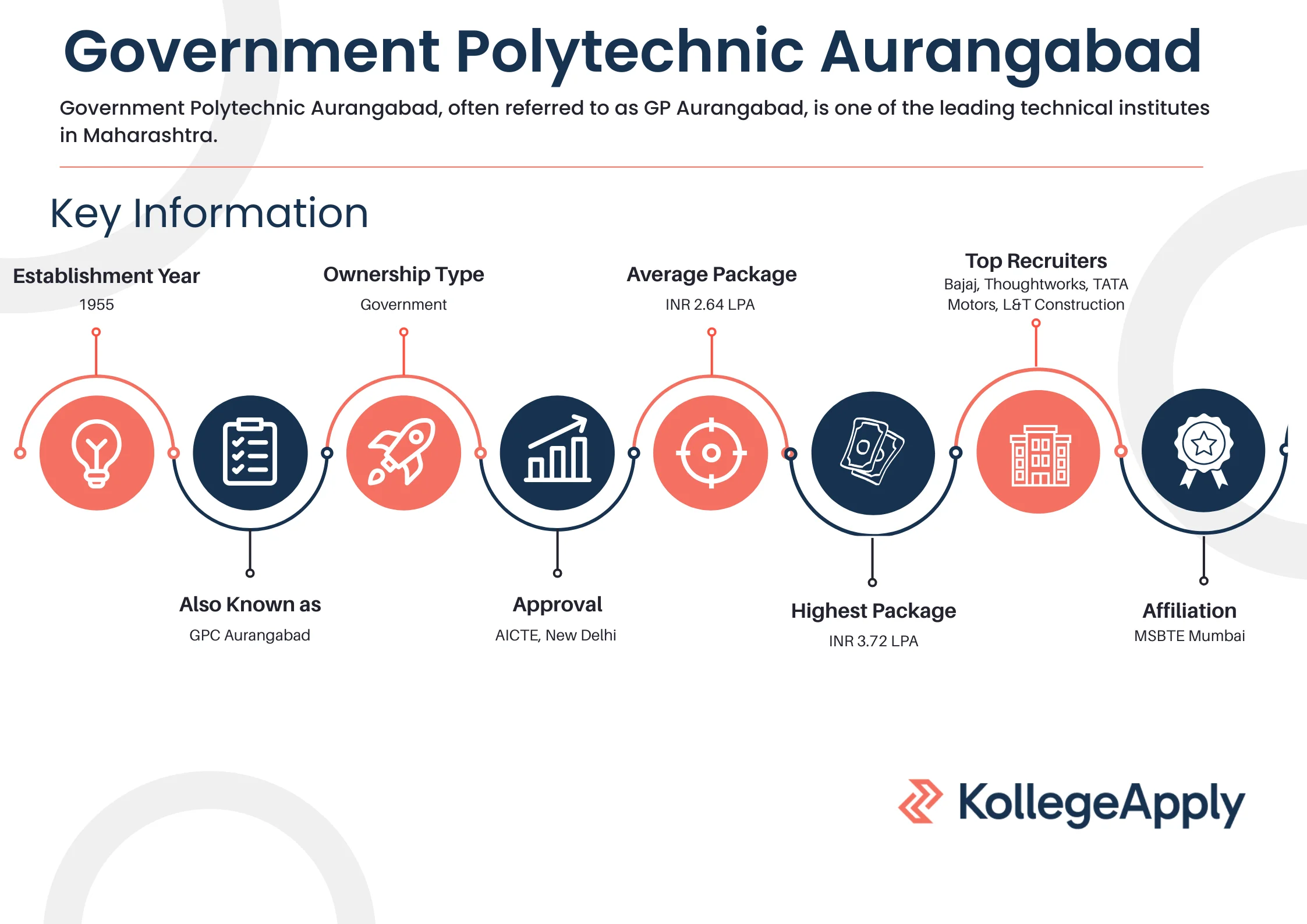 Government Polytechnic, Aurangabad’s top recruiters are Bajaj, Thoughtworks, TATA Motors and L&T Construction.