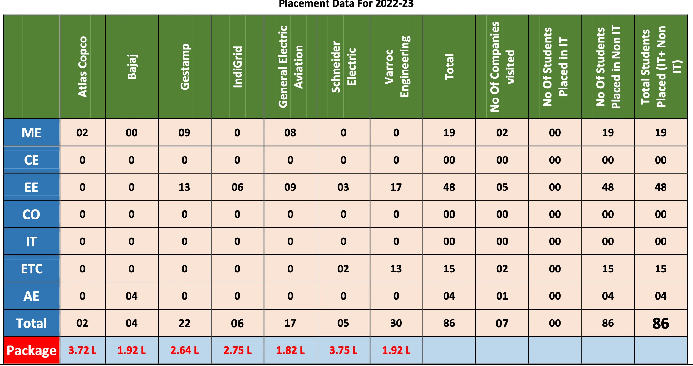 | Average Package | INR 2.64 LPA |