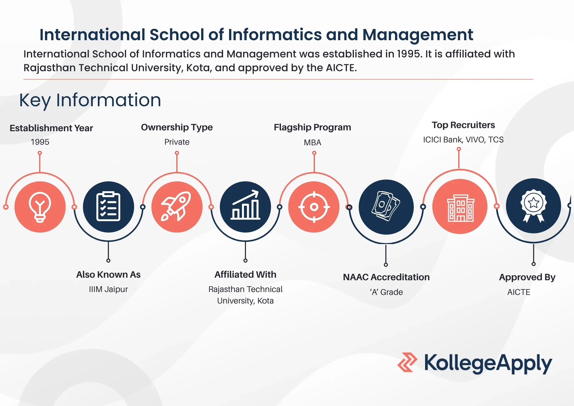 International School of Informatics and Management (IIIM) Jaipur was established in 1995 as a private institute affiliated with Rajasthan Technical University, Kota, approved by the AICTE (All India Council for Technical Education). Additionally, IIIM Jaipur is accredited by the NAAC (National Assessment and Accreditation Council) with an ‘A’ Grade.