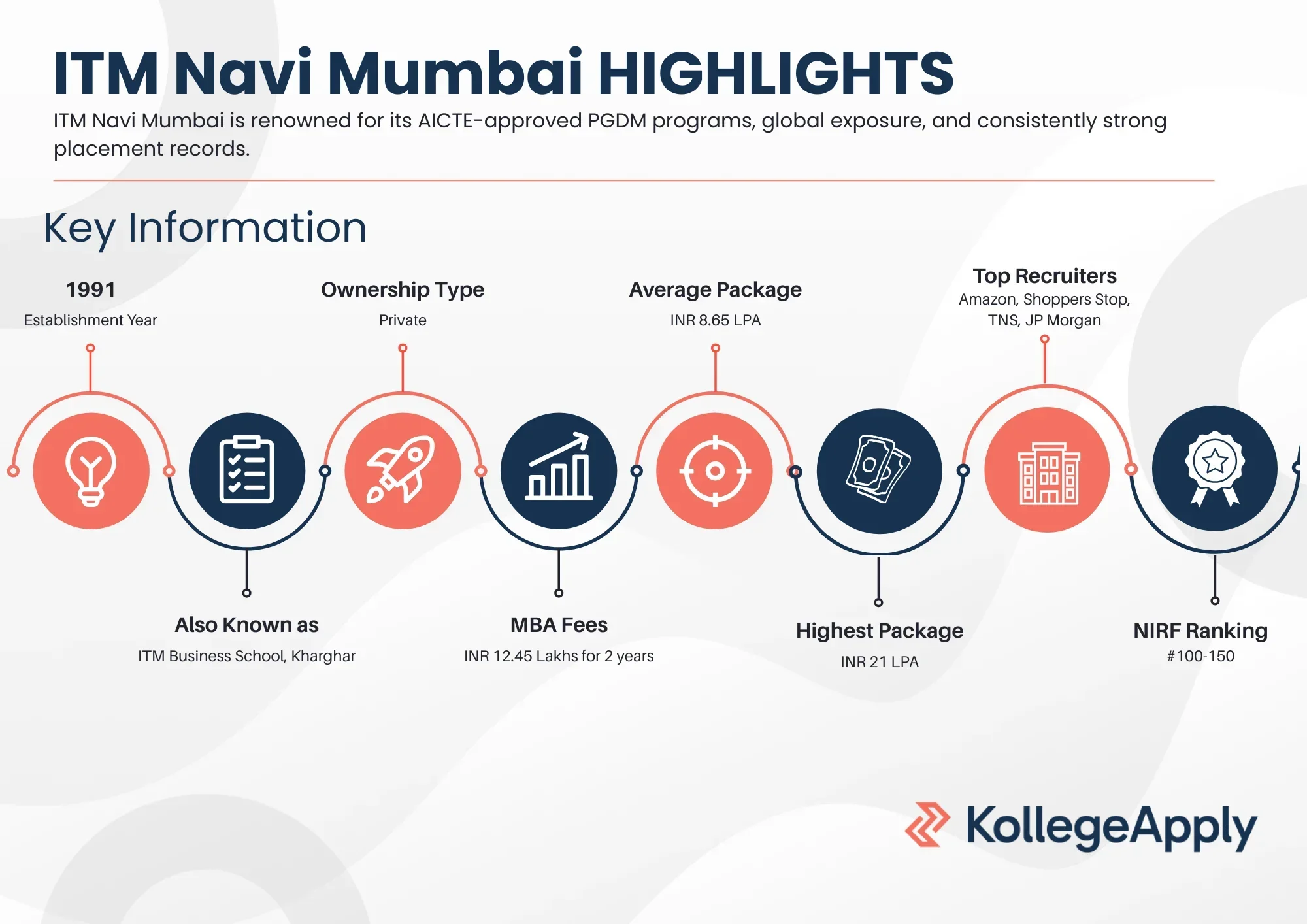 INR 12.45 Lakh | ITM Business School, Navi Mumbai | 3 acres | Average Package: INR 8.65 LPA |