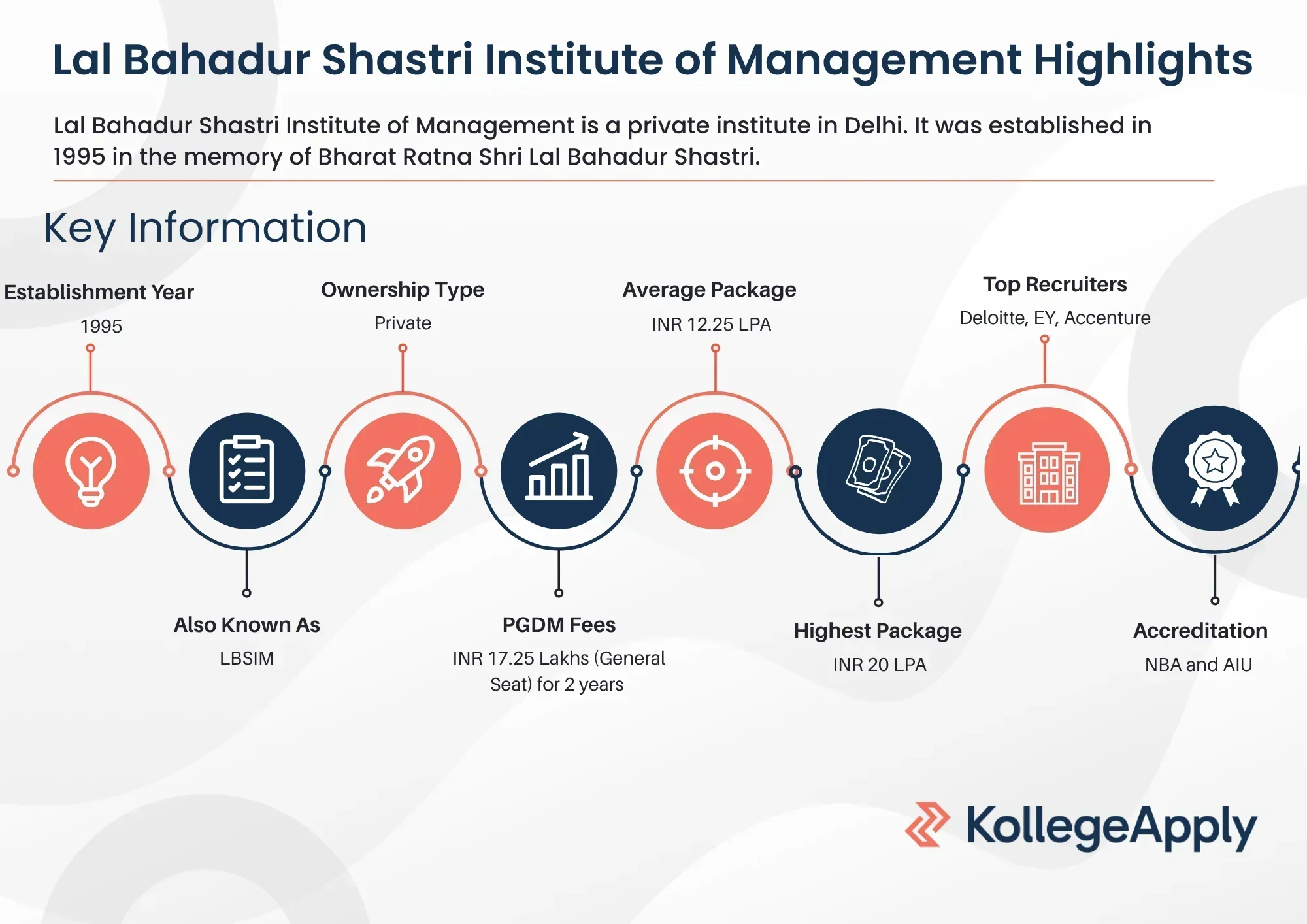 LBSIM Delhi was established in 1995 by Shri Anil Shastri in memory of Bharat Ratna Shri Lal Bahadur Shastri. The institute is approved by AICTE and is a member of AACSB International. The institute is also accredited by the NBA and AIU. LBSIM offers PGDM programmes in General, Financial Management, Research & Business Analytics and Artificial Intelligence & Data Science. It also offers Fellow Programme in Management (FPM) and Management Development Programmes (MDPs).