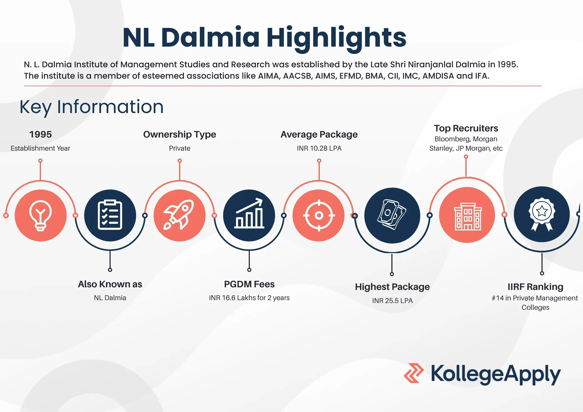 N. L. Dalmia is one of the leading B-schools in Mumbai. It was ranked 14th under the private category in the IIRF MBA Rankings 2025. It has also been ranked 72nd and 50th by India Today and The Week for ‘MBA’ category in the year 2024.