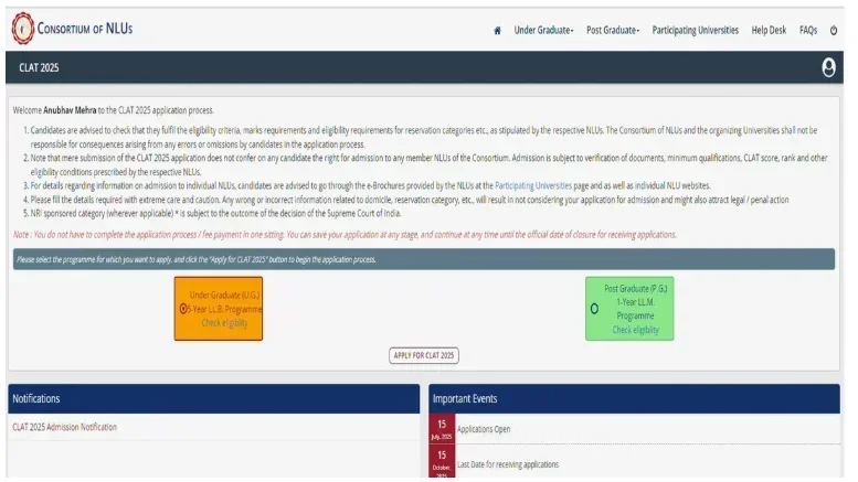 - Click on the CLAT 2026 Registration Link on the homepage.