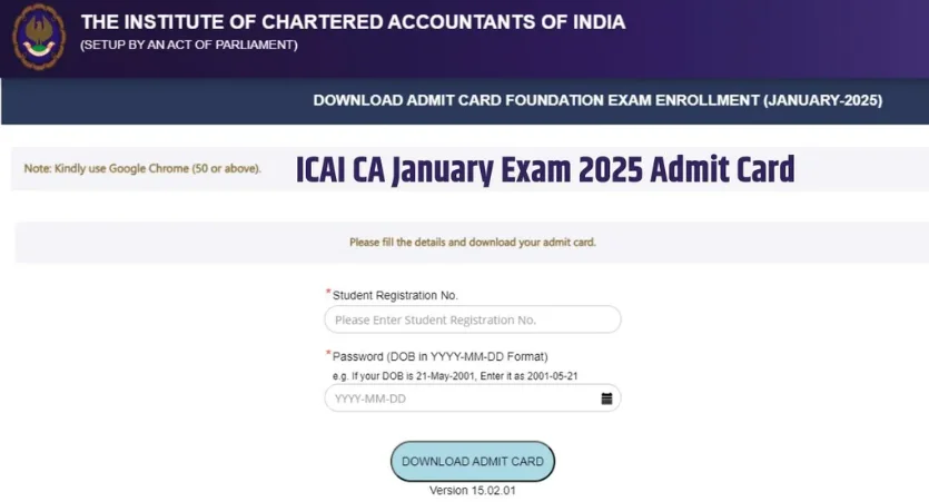 The ICAI CA Foundation Admit Card 2026 for the January session is expected to be released in December 2025, approximately 15 days before the exams commence. Although the exact release date has not yet been officially announced by ICAI, students should regularly check the ICAI official website or the SSP portal for updates.